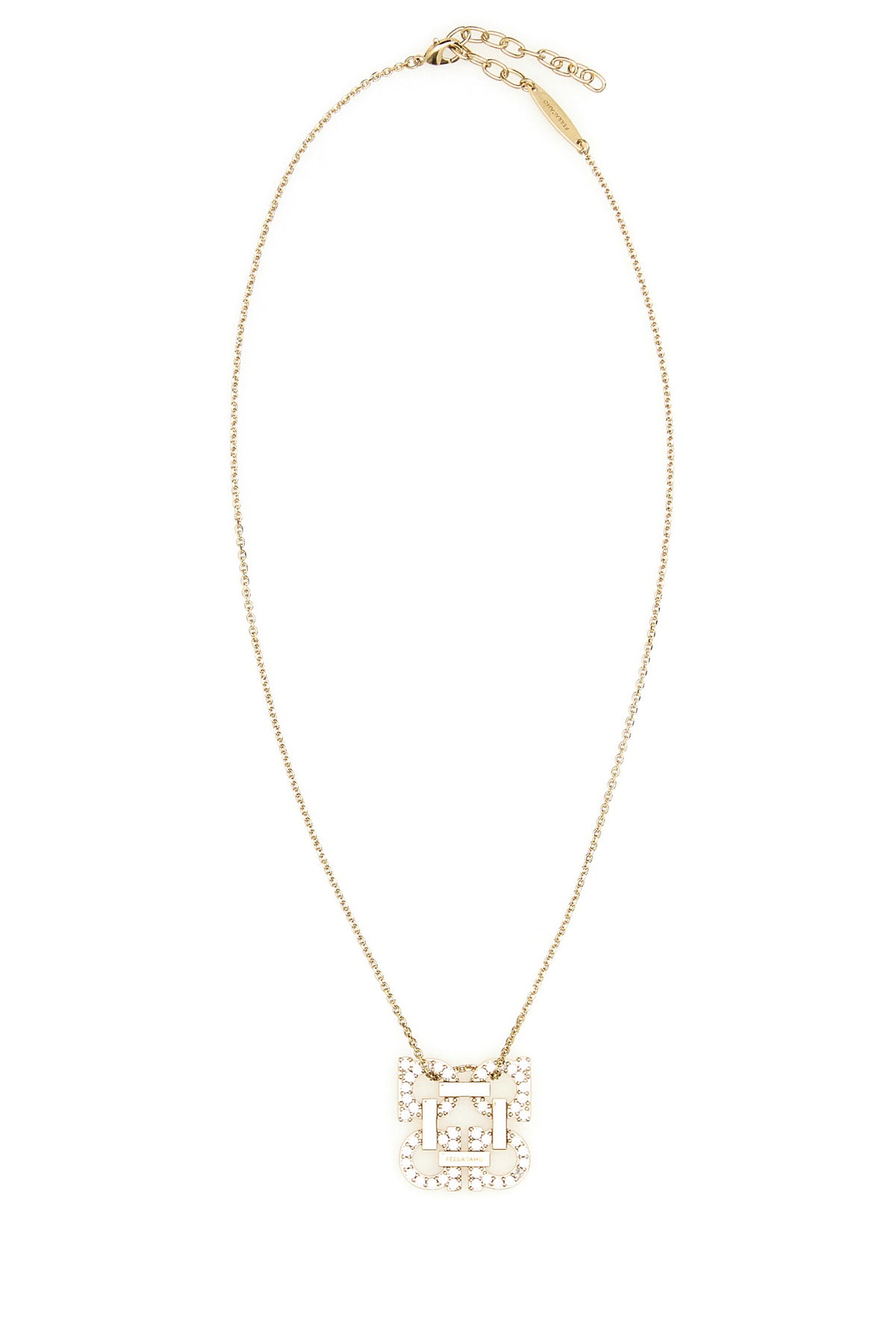Necklace realized in gold-tone pleated metal enriched by Gancini charm with rhinestones.