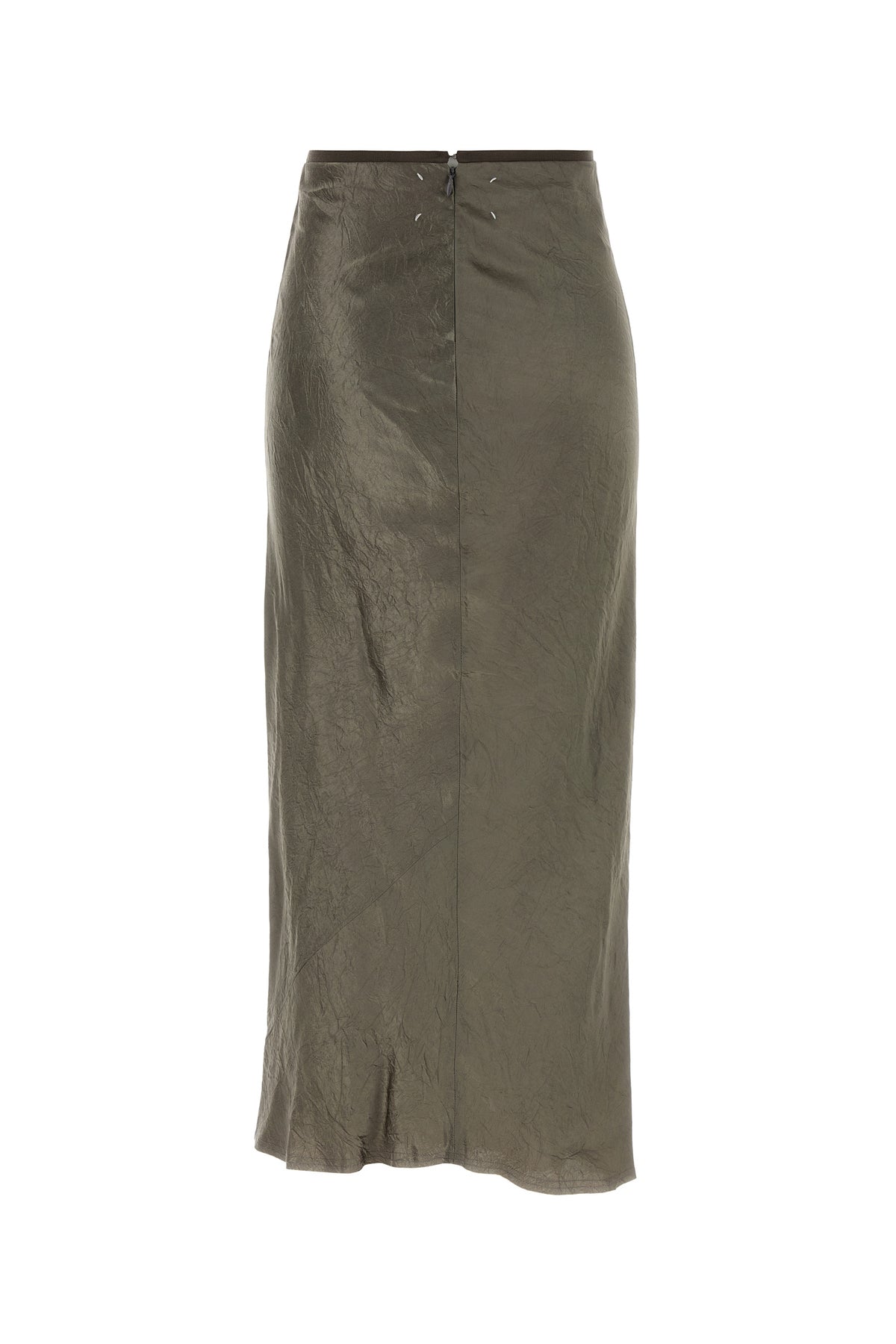 Midi-length skirt realized in satin characterized by contrasting iconic stitchings at the back.