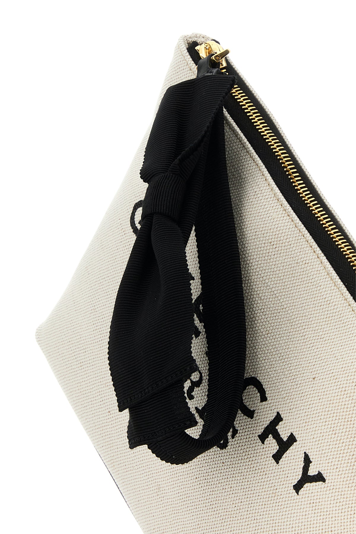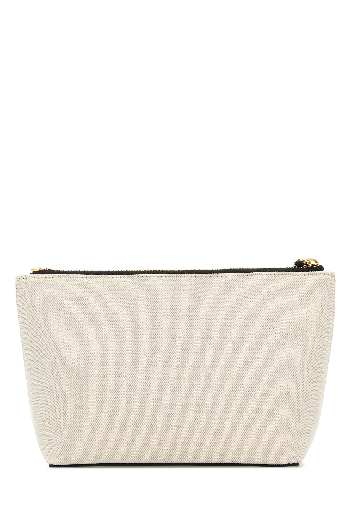 Pouch realized in canvas characterized by contrasting printed logo at the front.