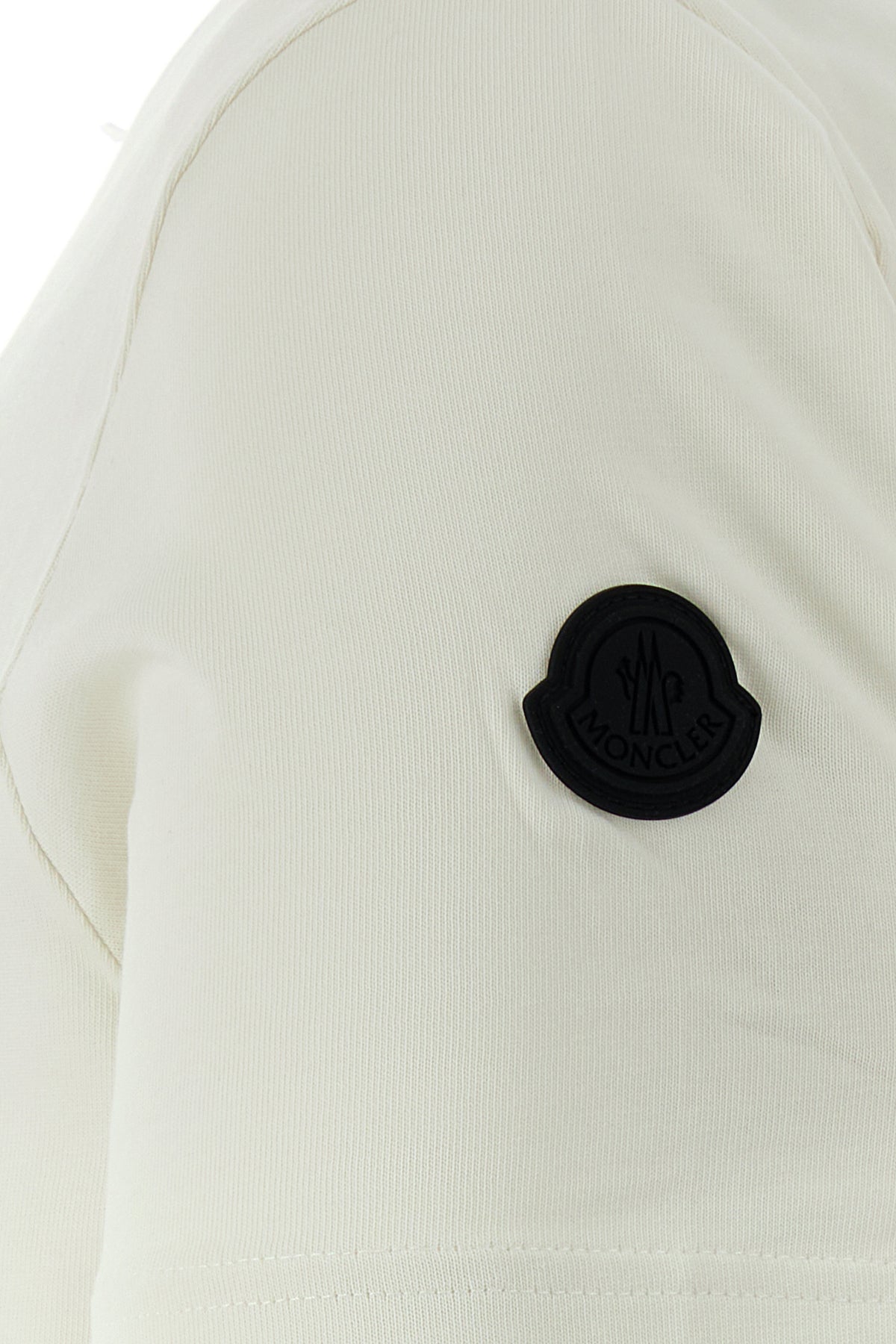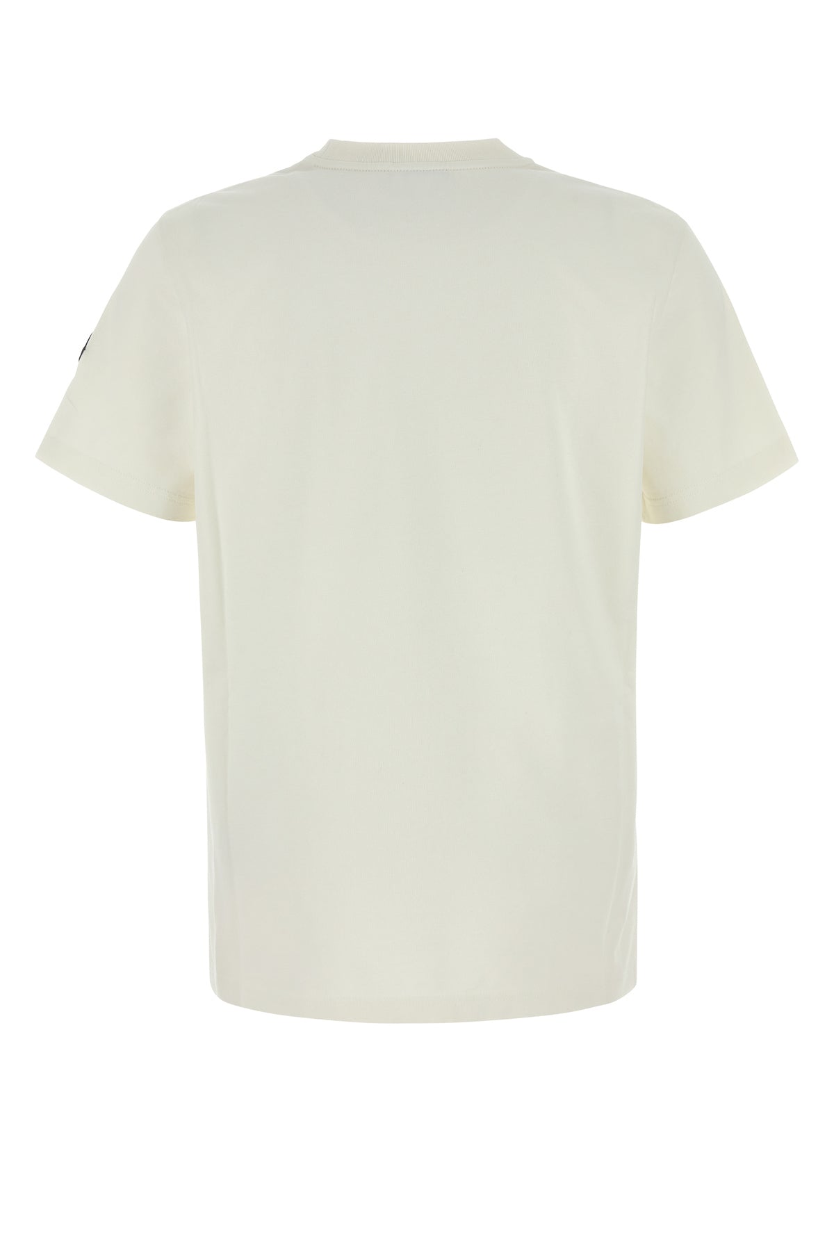 T-shirt realized in pure cotton characterized by contrasting logoed print at the front enriched by tonal logoed patch on the sleeve.