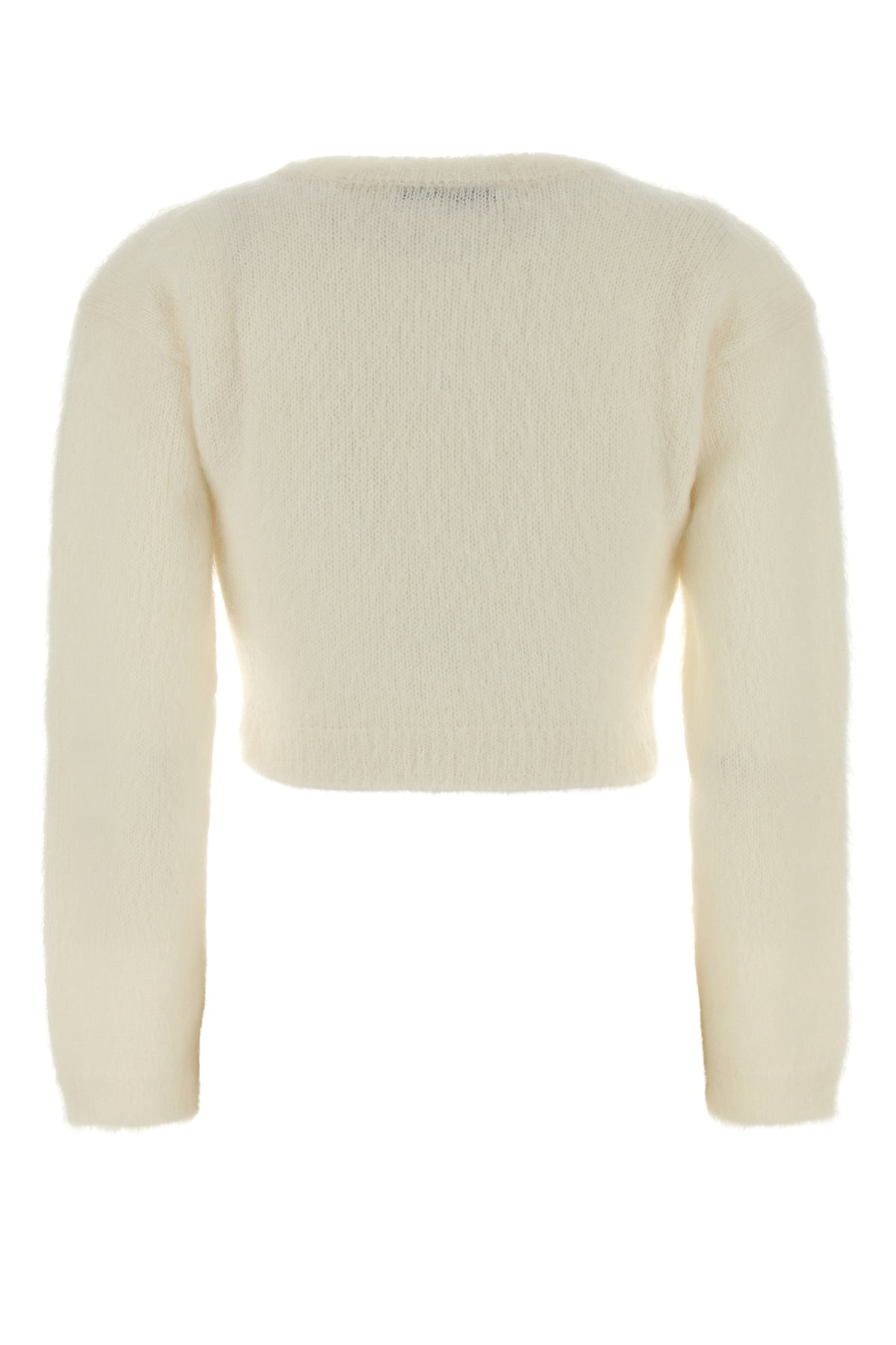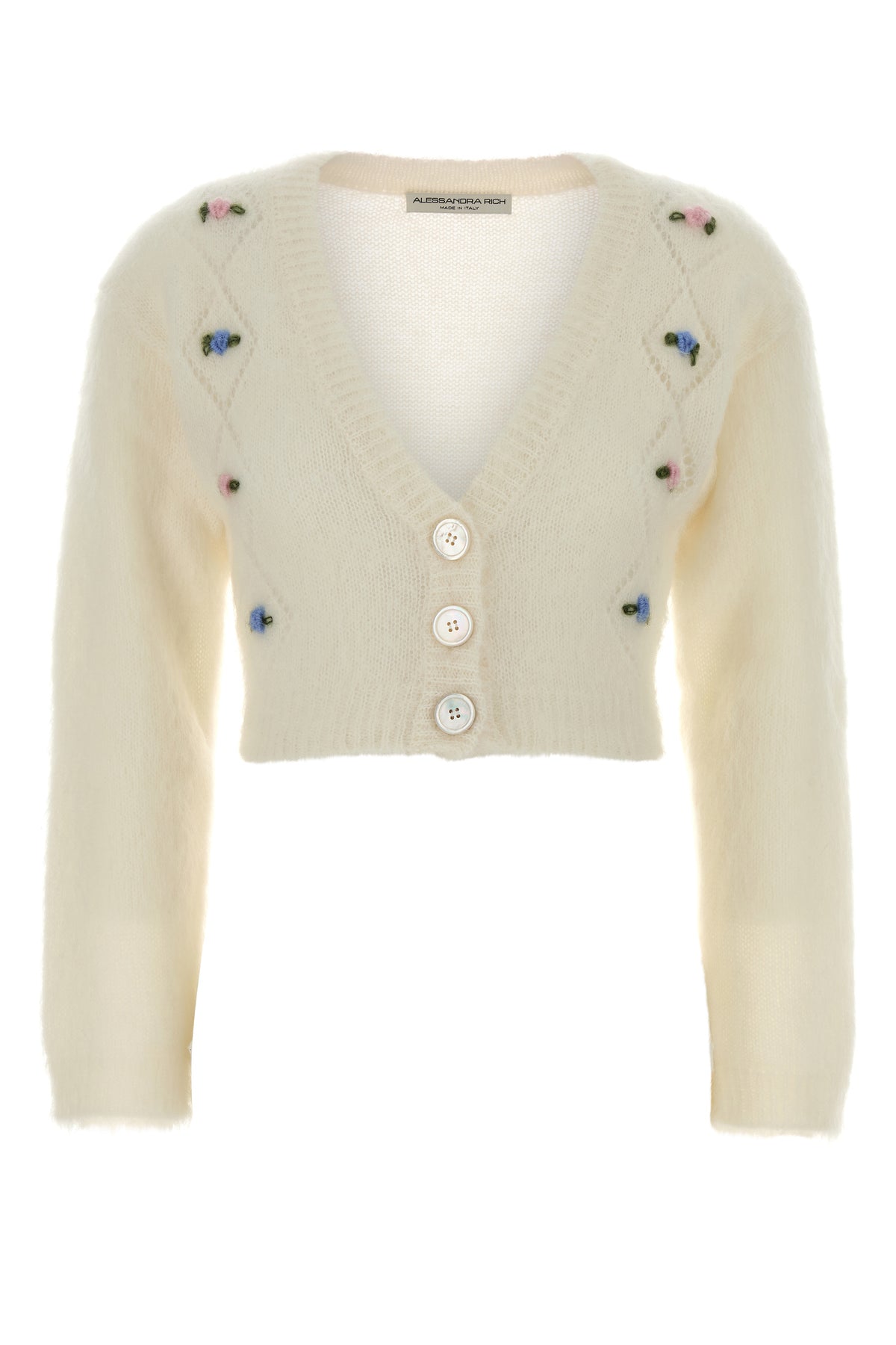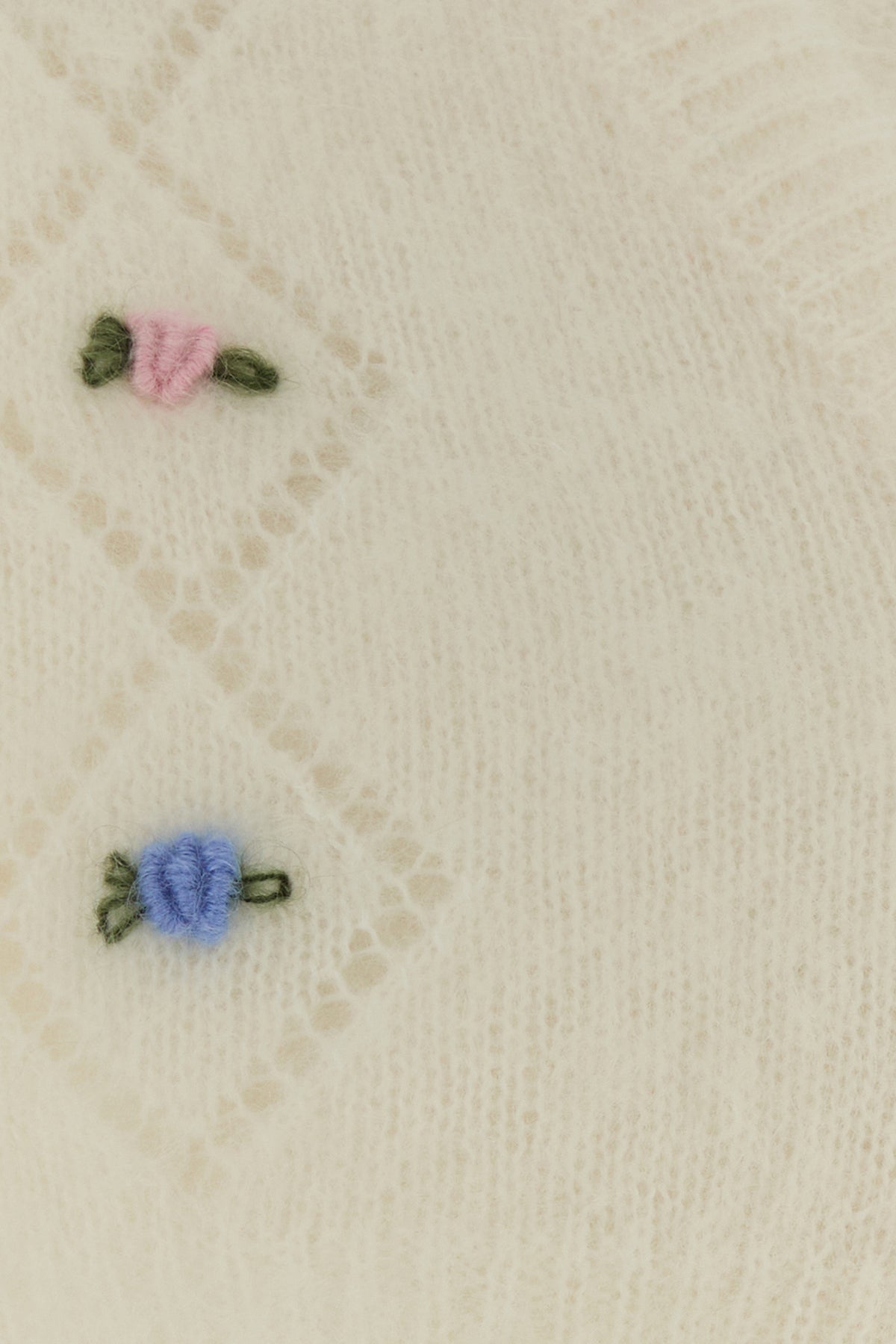 Cropped-cut cardigan realized in mohair blend characterized by floral embroideries at the front.