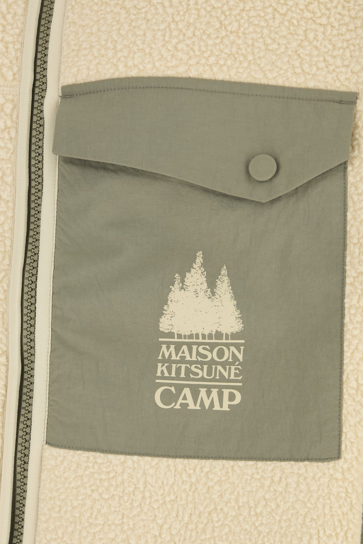 Jacket realized in pile with contrasting tech fabric inserts characterized by Maison Kitsuné Camp print on the chest.