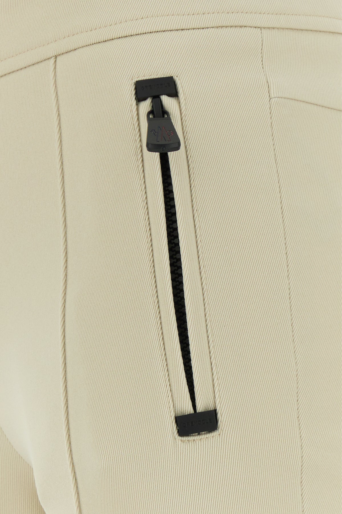 Pant realized in stretch polyester blend enriched by logoed patch at the back.
