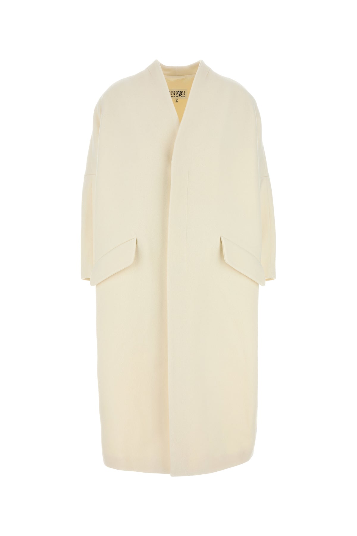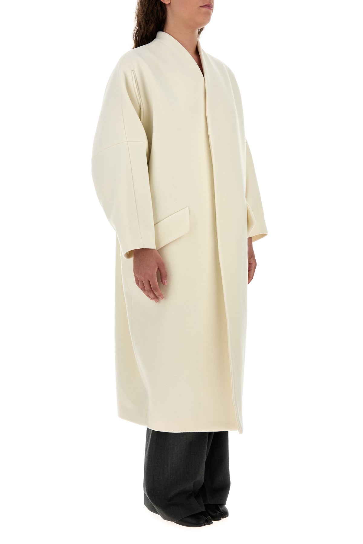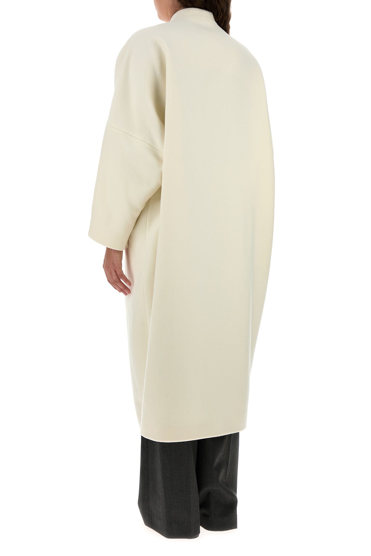 Coat realized in virgin wool blend characterized by tonal iconic stitching at the back.