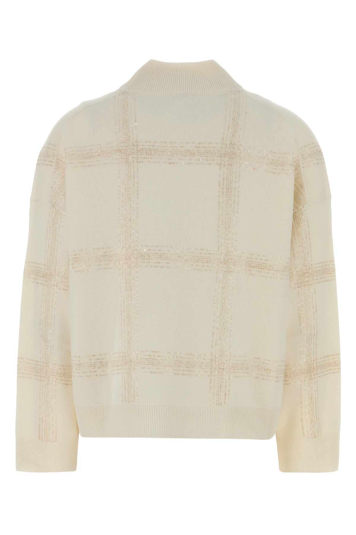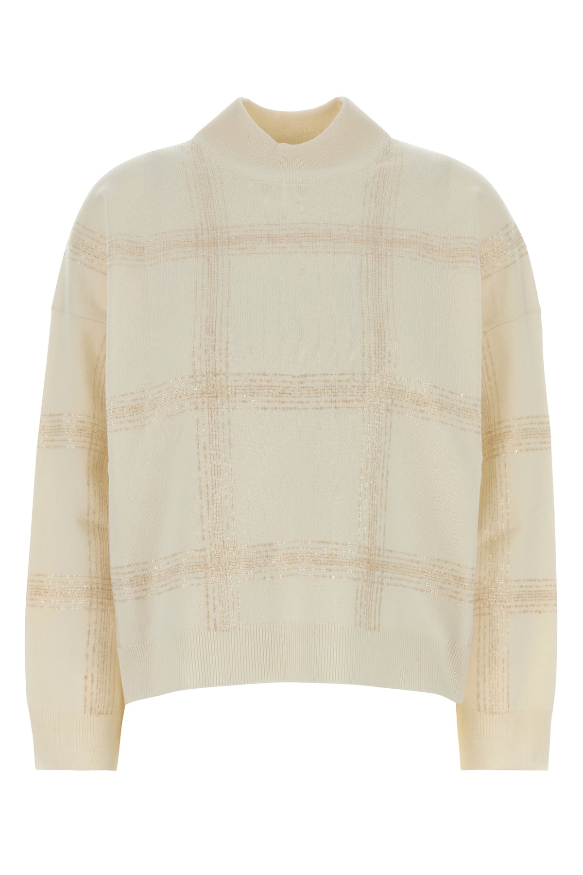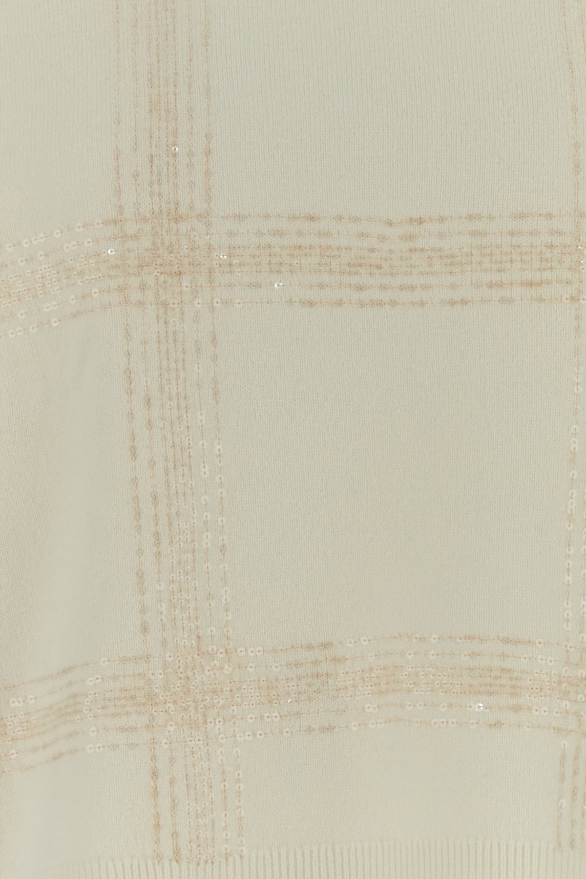 Oversize sweater realized in virgin wool blend characterized by checked embroidery with sequins on the entire surface.