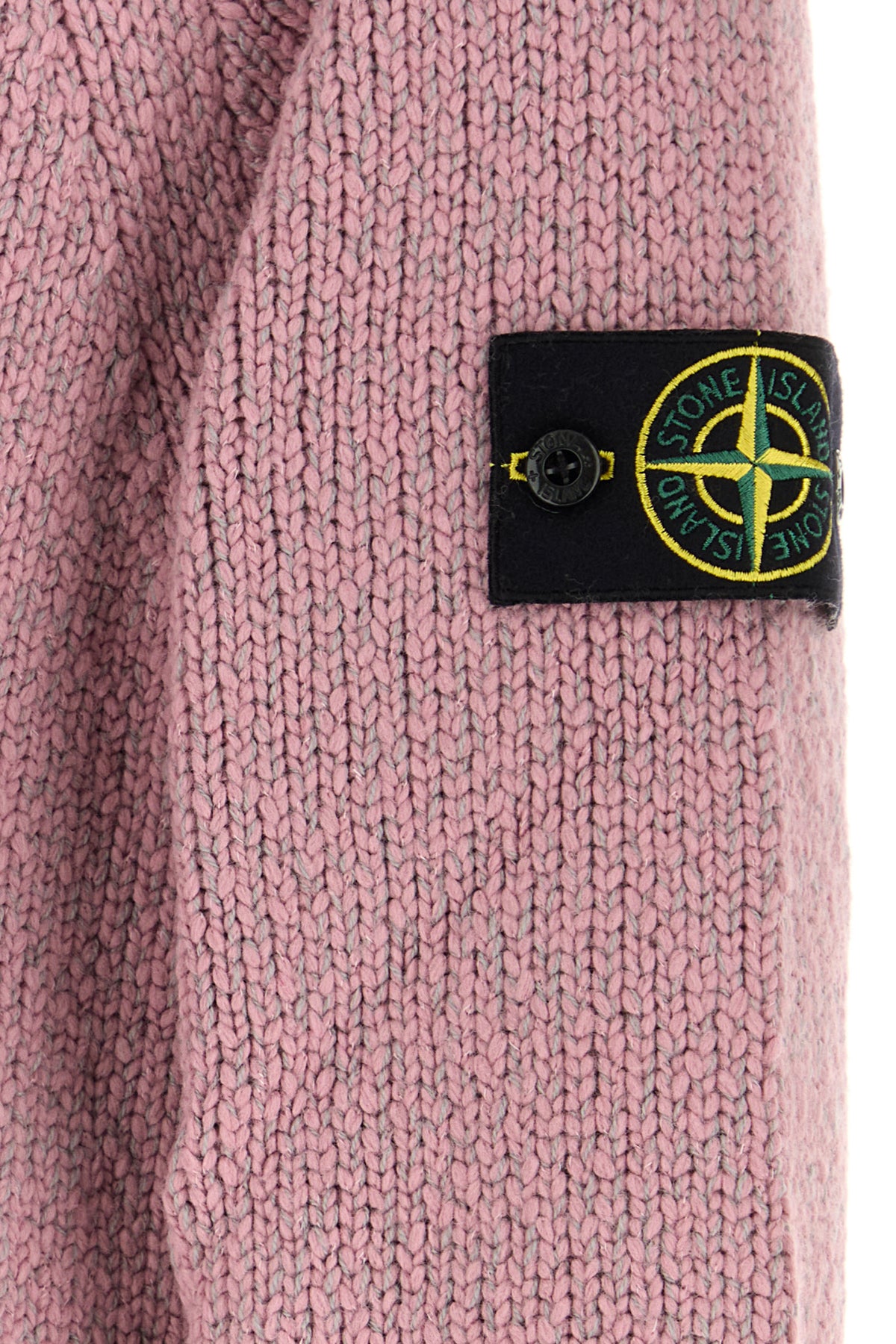 Sweater realized in virgin wool blend enriched by detachable logoed label on the sleeve.