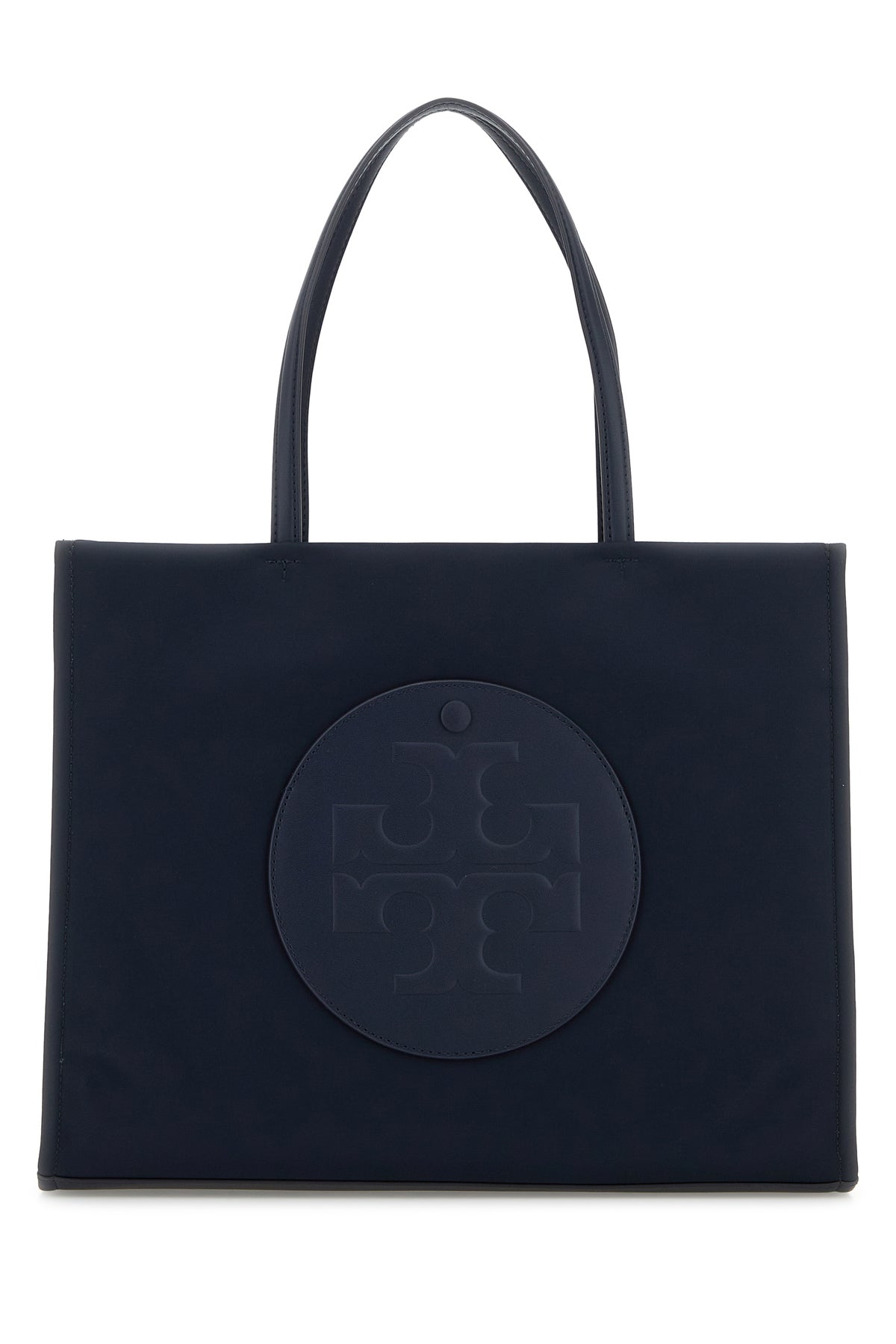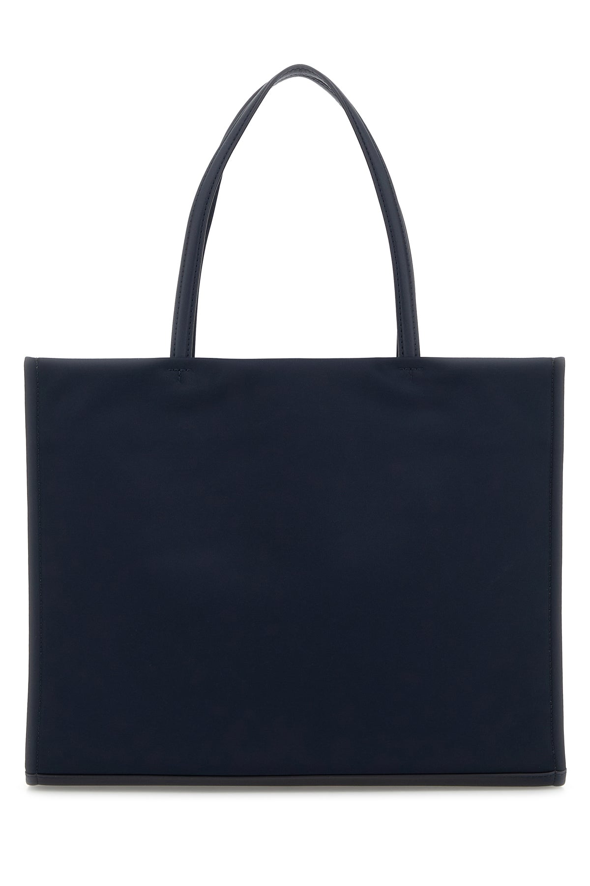 Shopping bag realized in fabric enriched by logoed patch at the front.