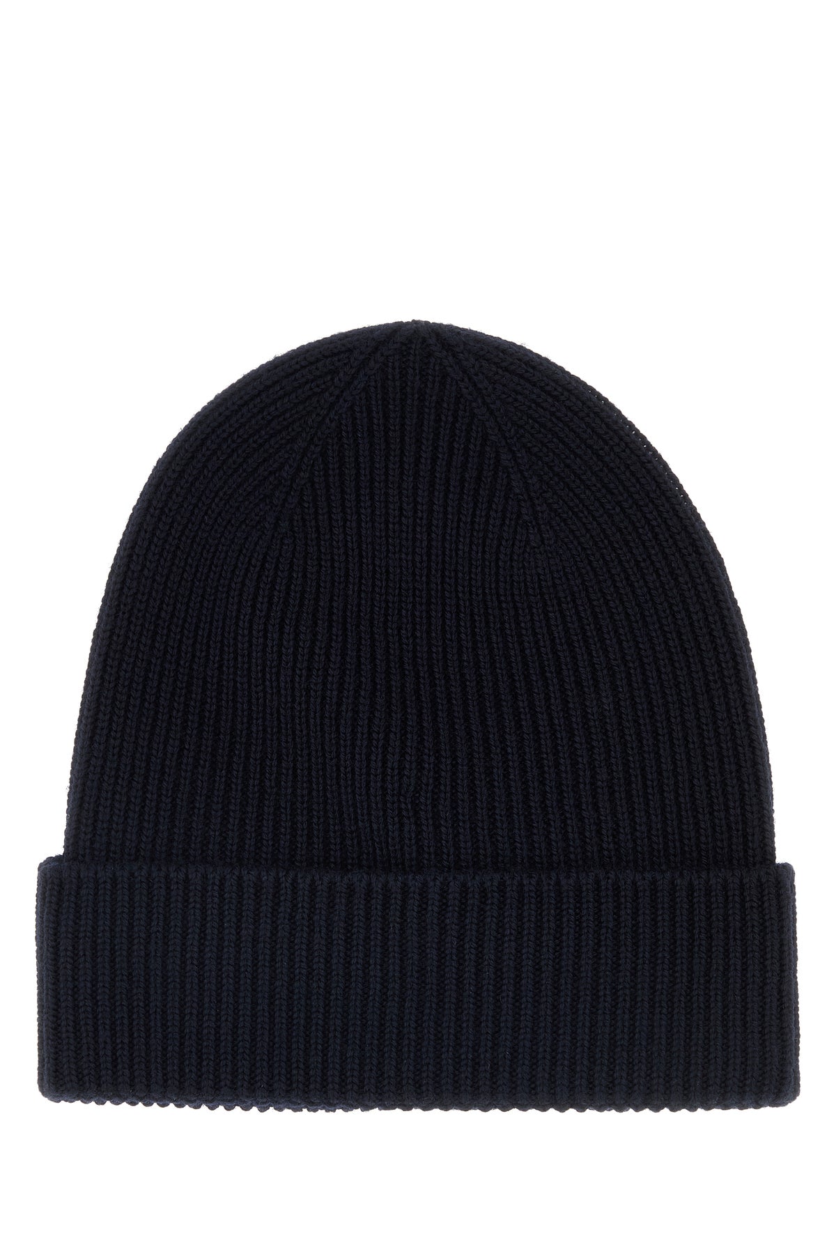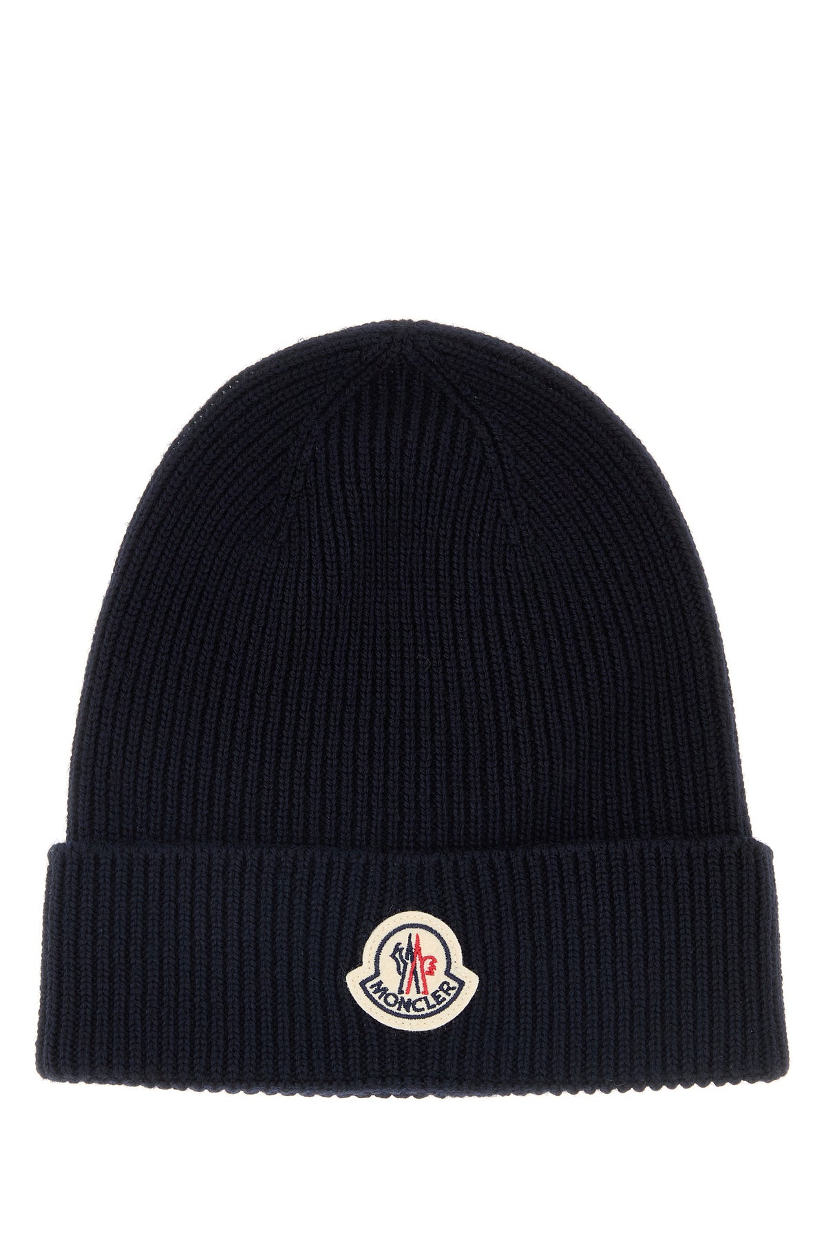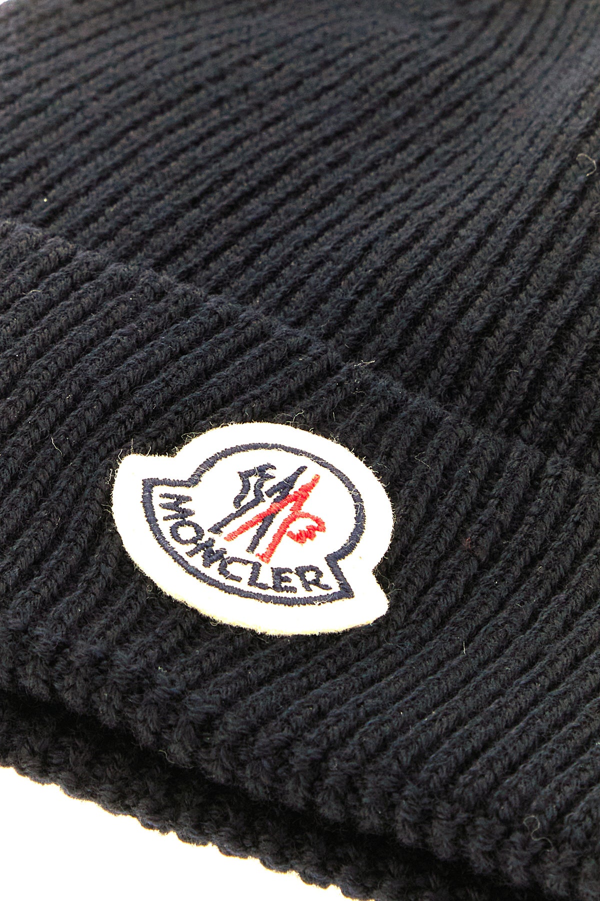 Beanie hat realized in pure virgin wool enriched by contrasting logoed patch at the front.