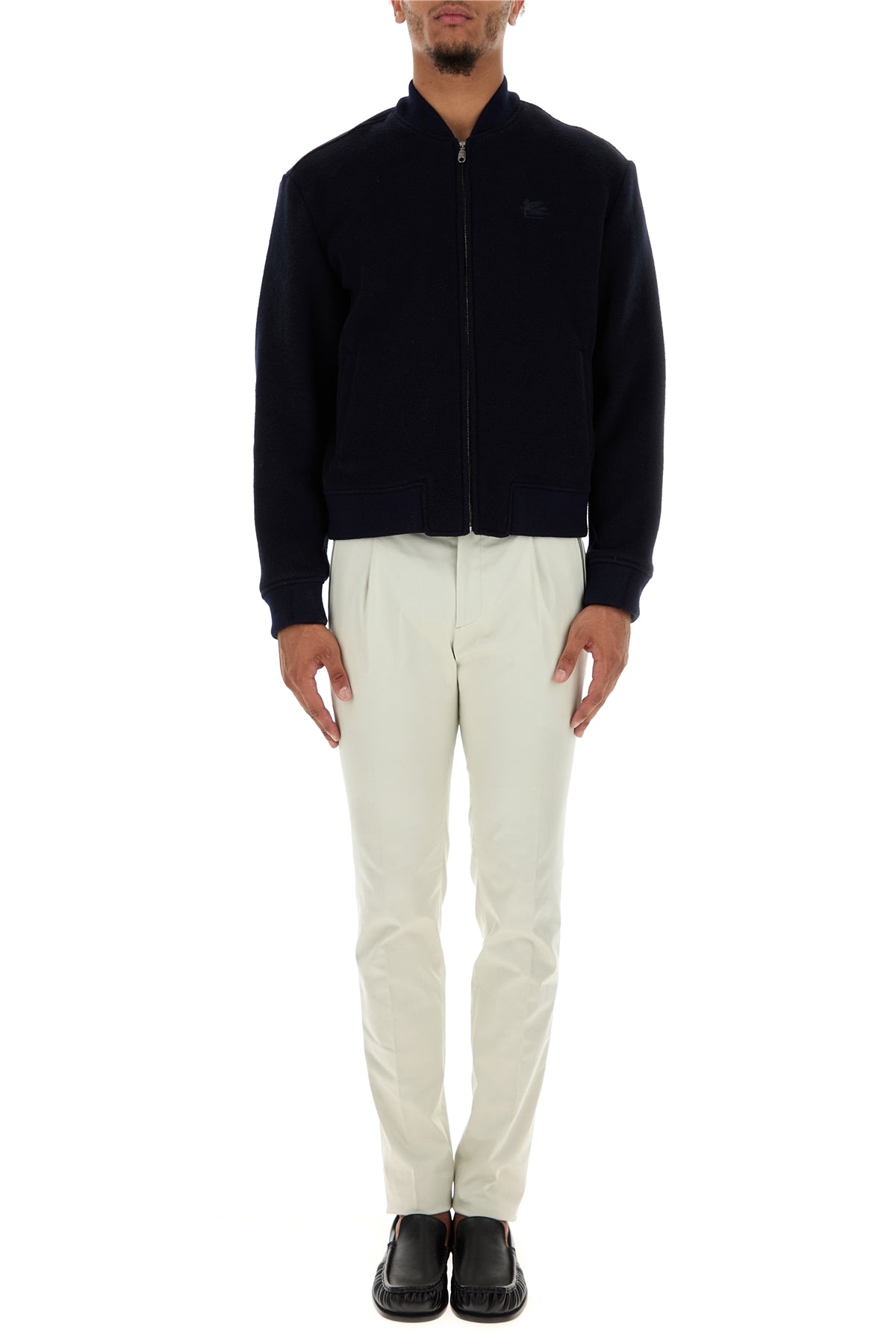 Bomber jacket realized in wool blend characterized by tonal Pegaso embroidery on the chest.