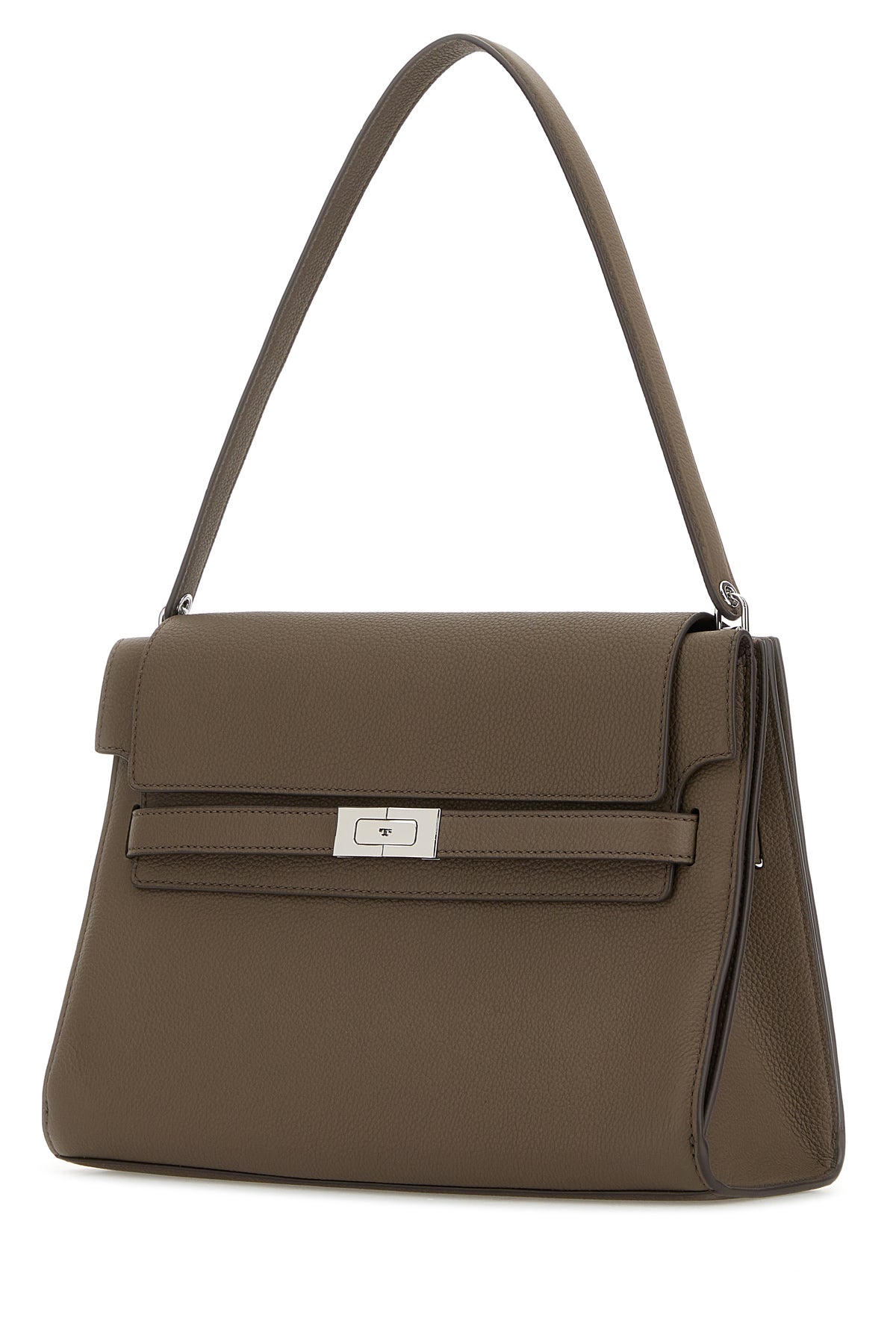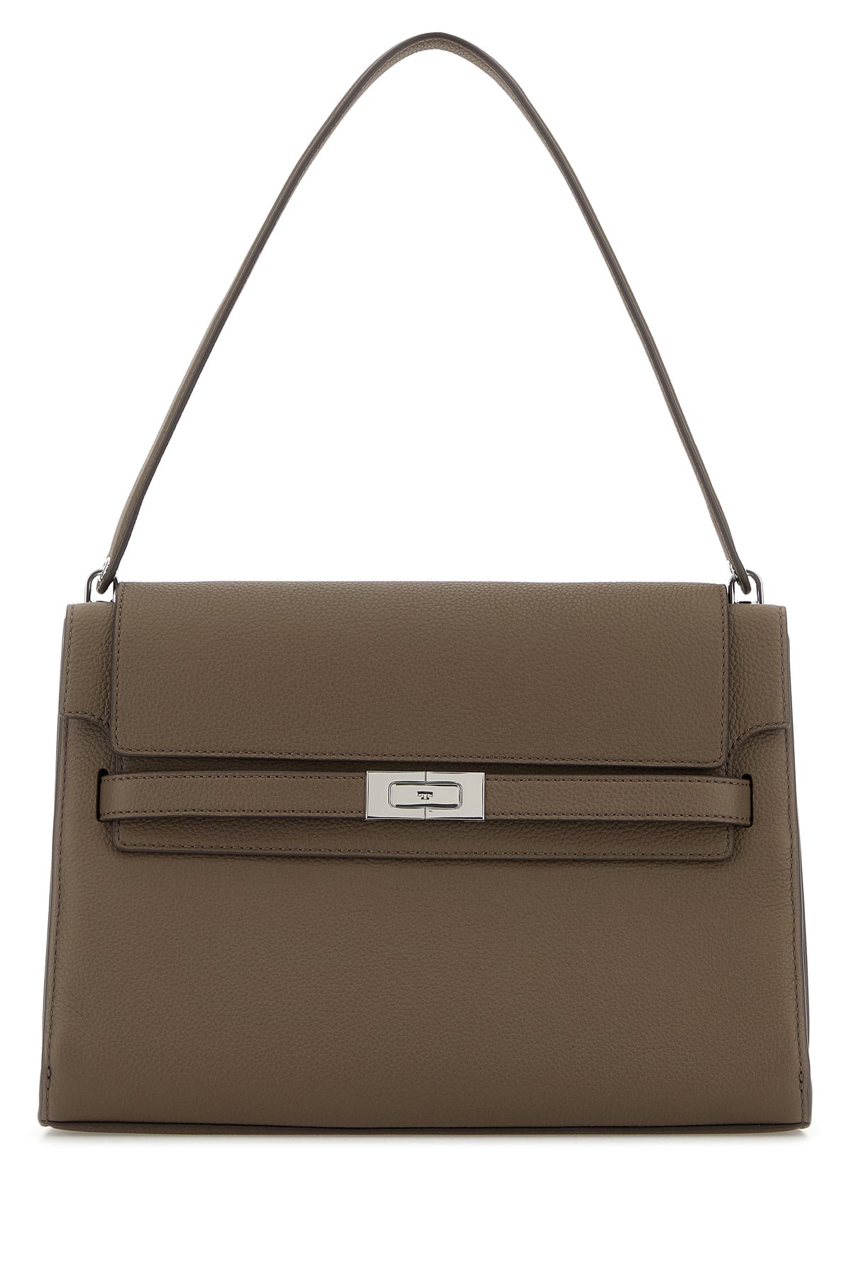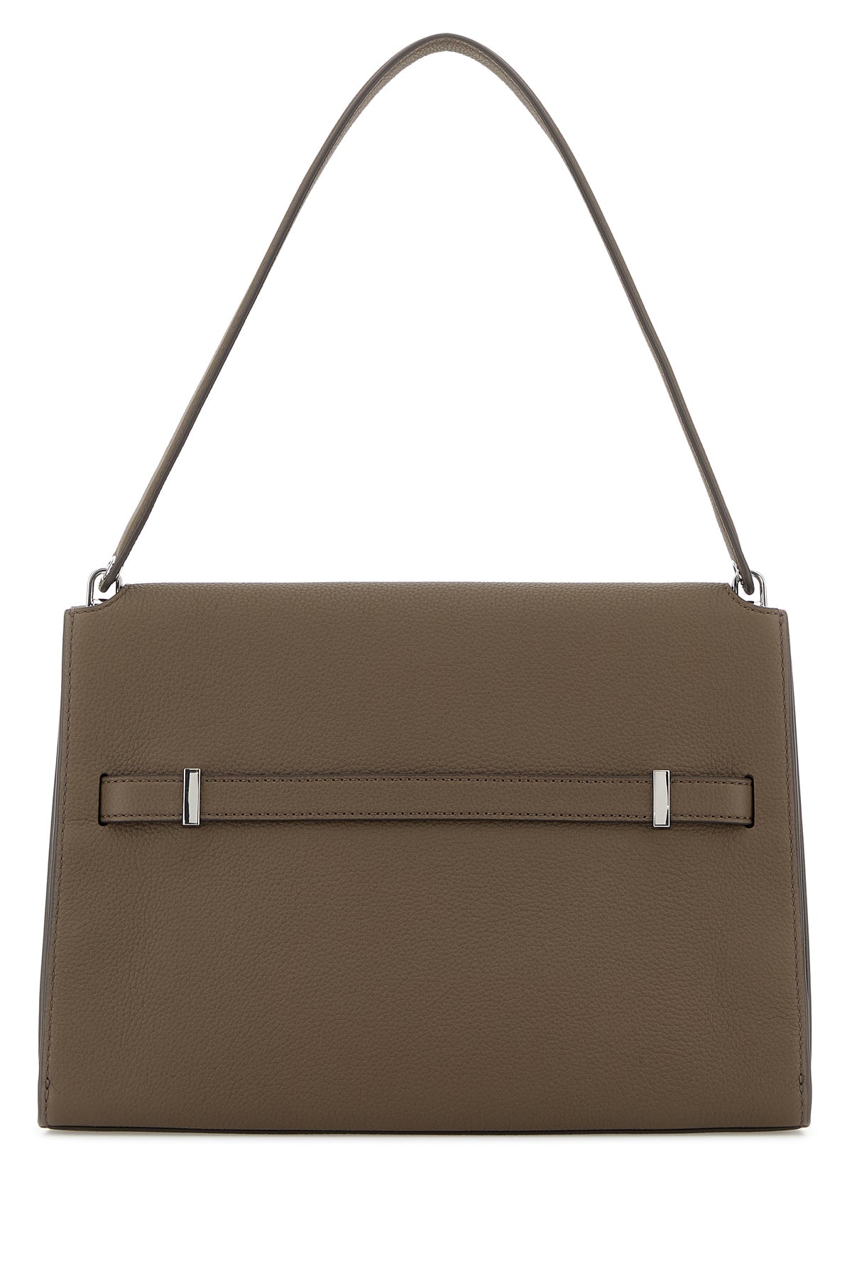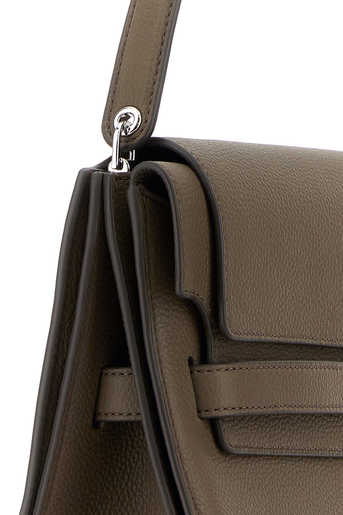 Shoulder bag realized in pebble leather enriched by tonal leather belt with metal T buckle.