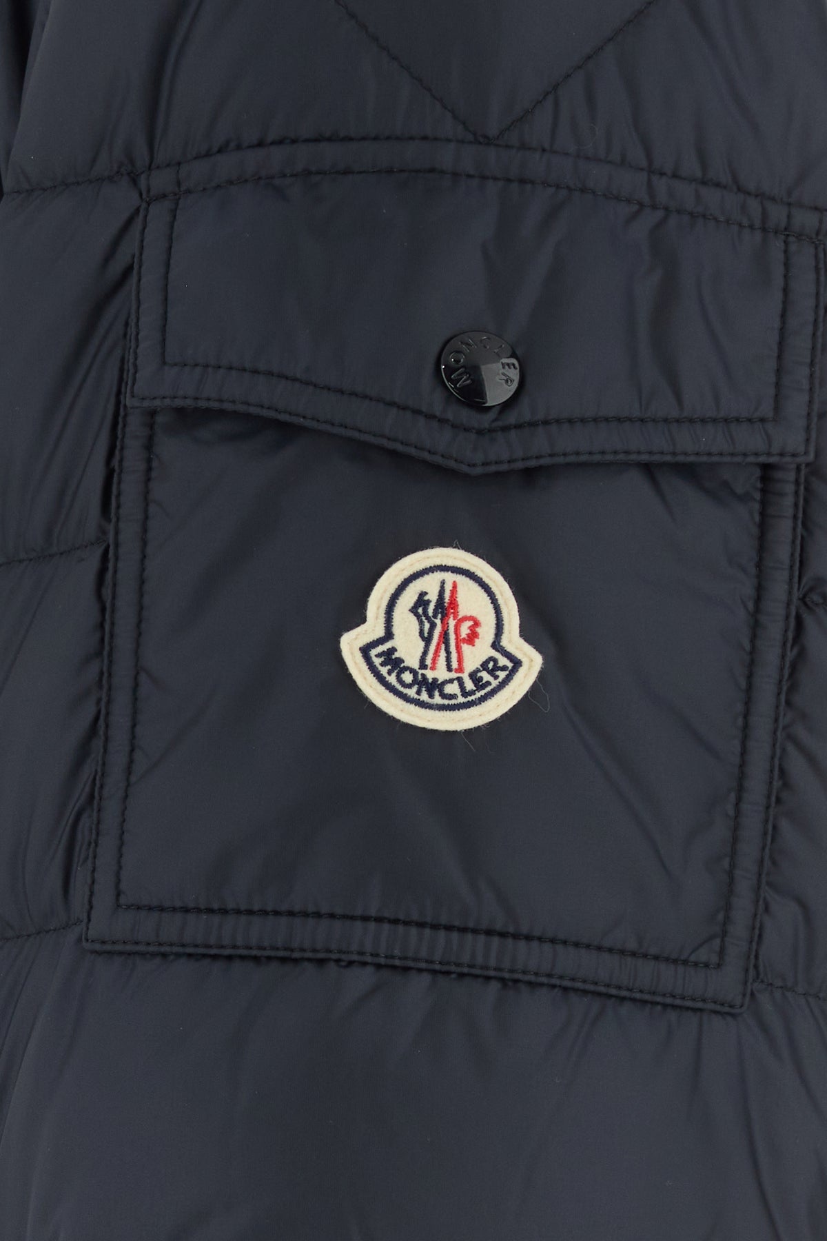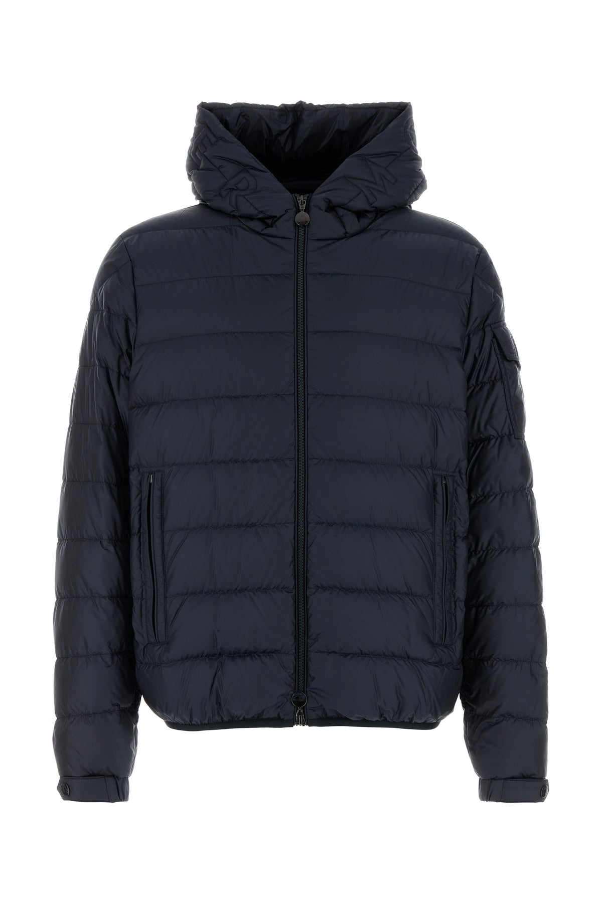 Down jacket realized in quilted nylon enriched by contrasting logoed patch on the sleeve.