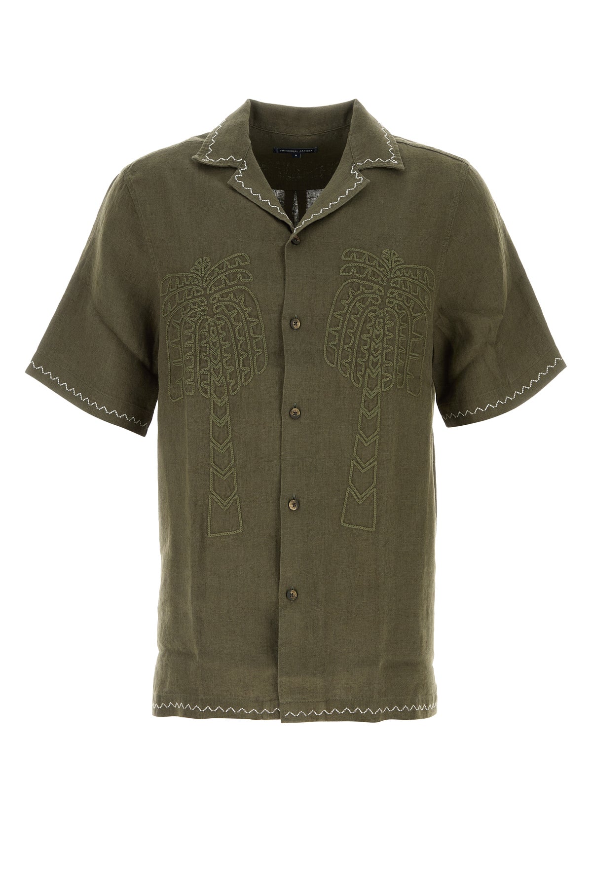 Short-sleeves shirt realized in pure linen characterized by peculiar embroidery at the front.