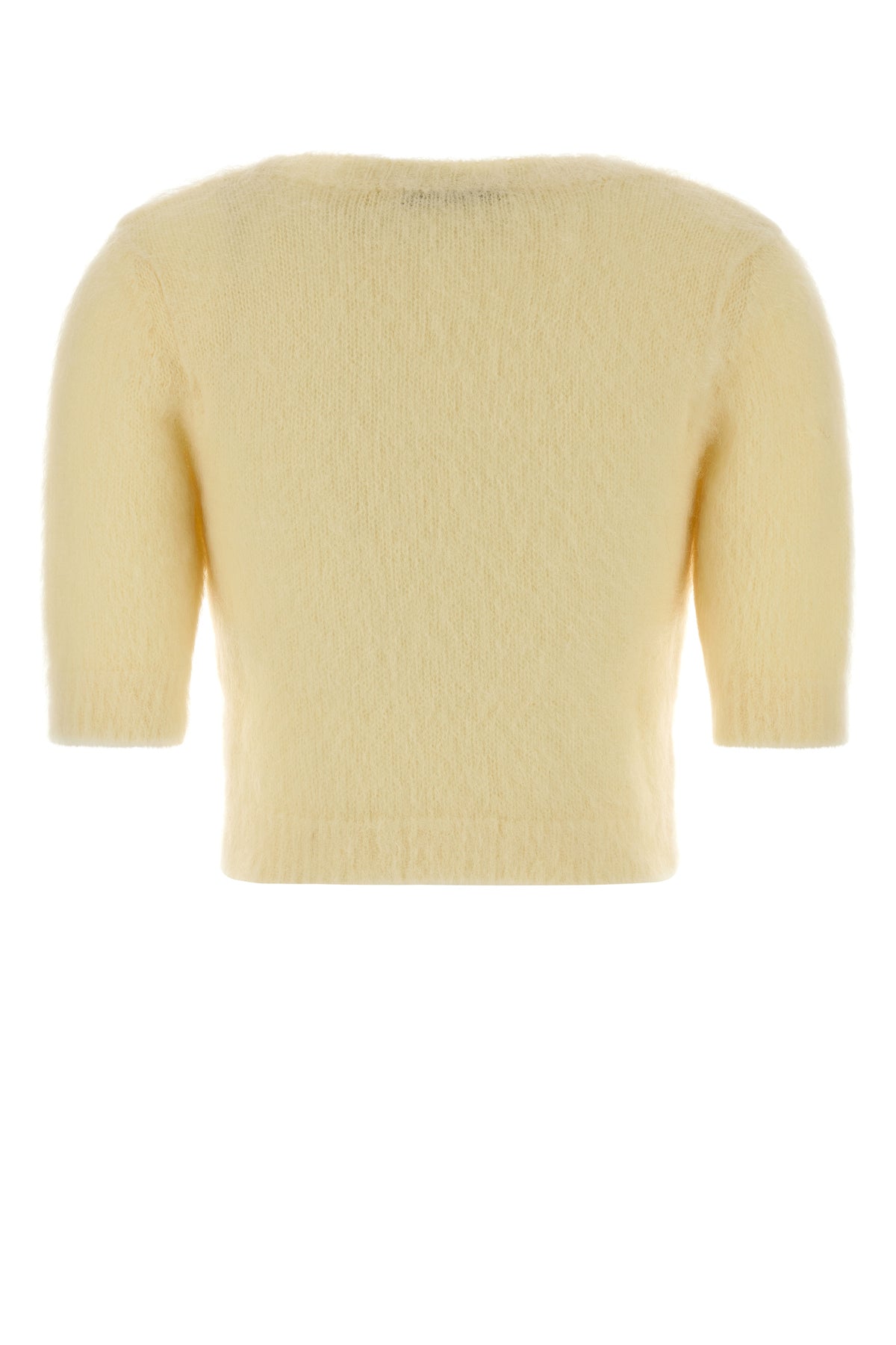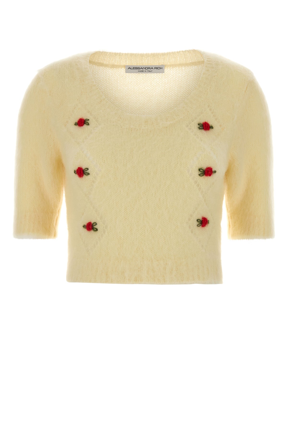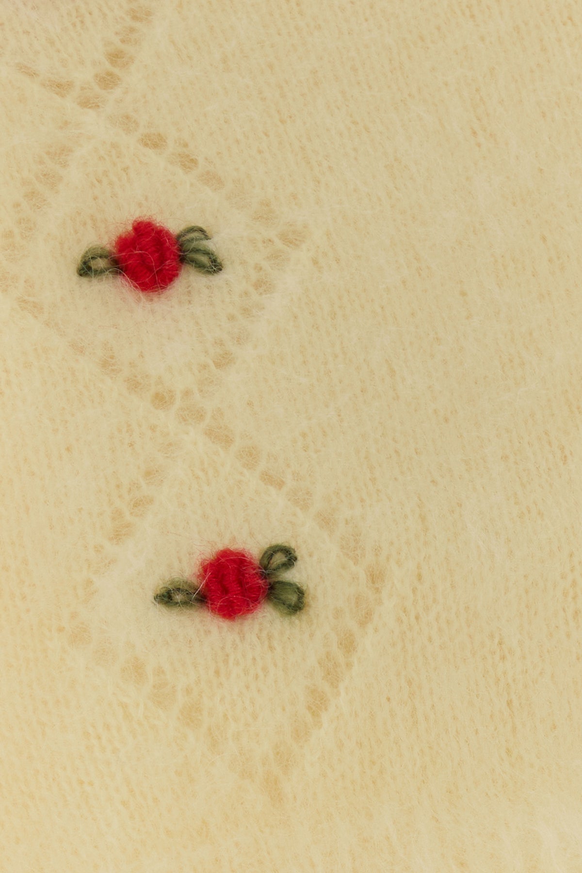 Cropped-cut sweater realized in mohair blend characterized by floral embroideries at the front.