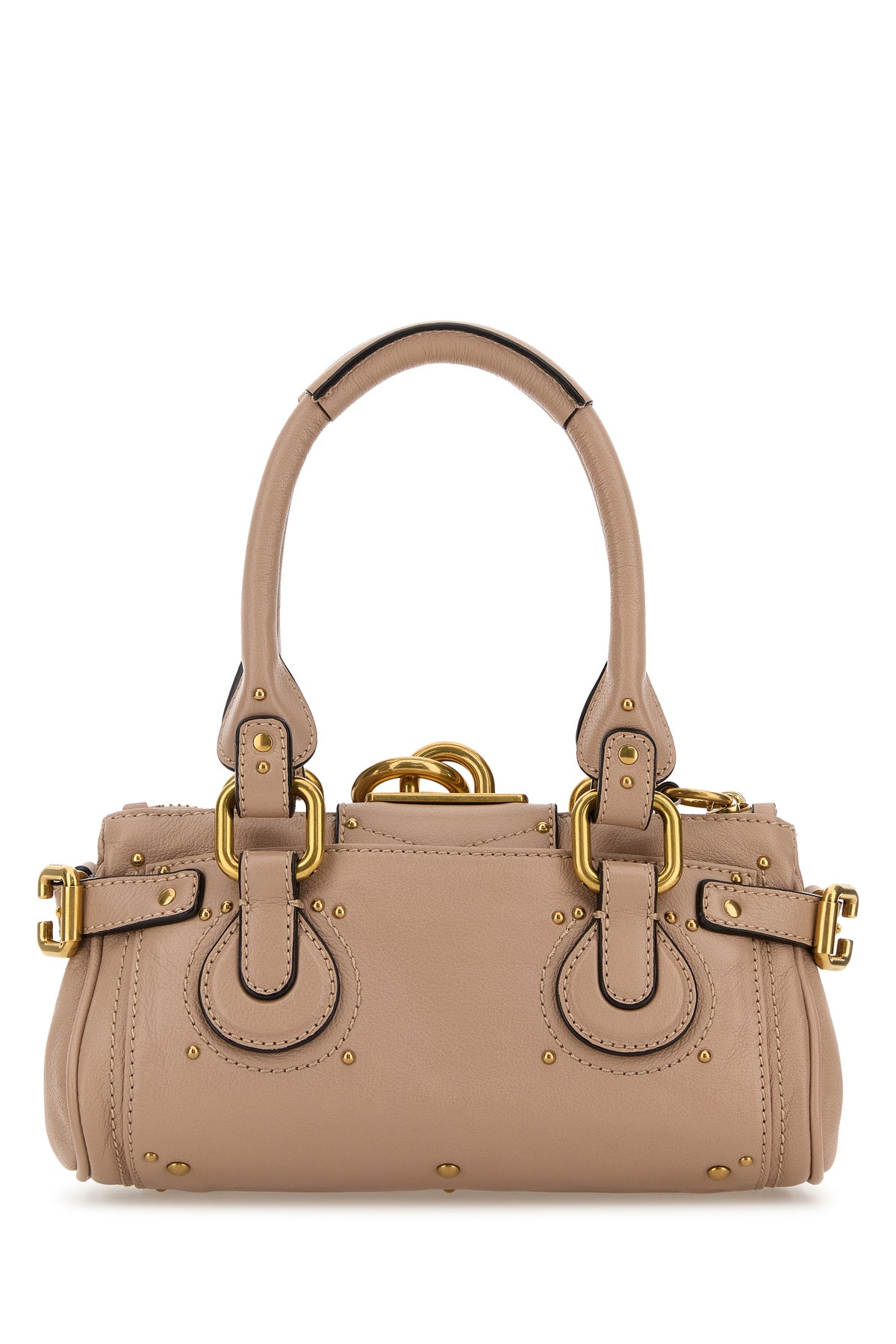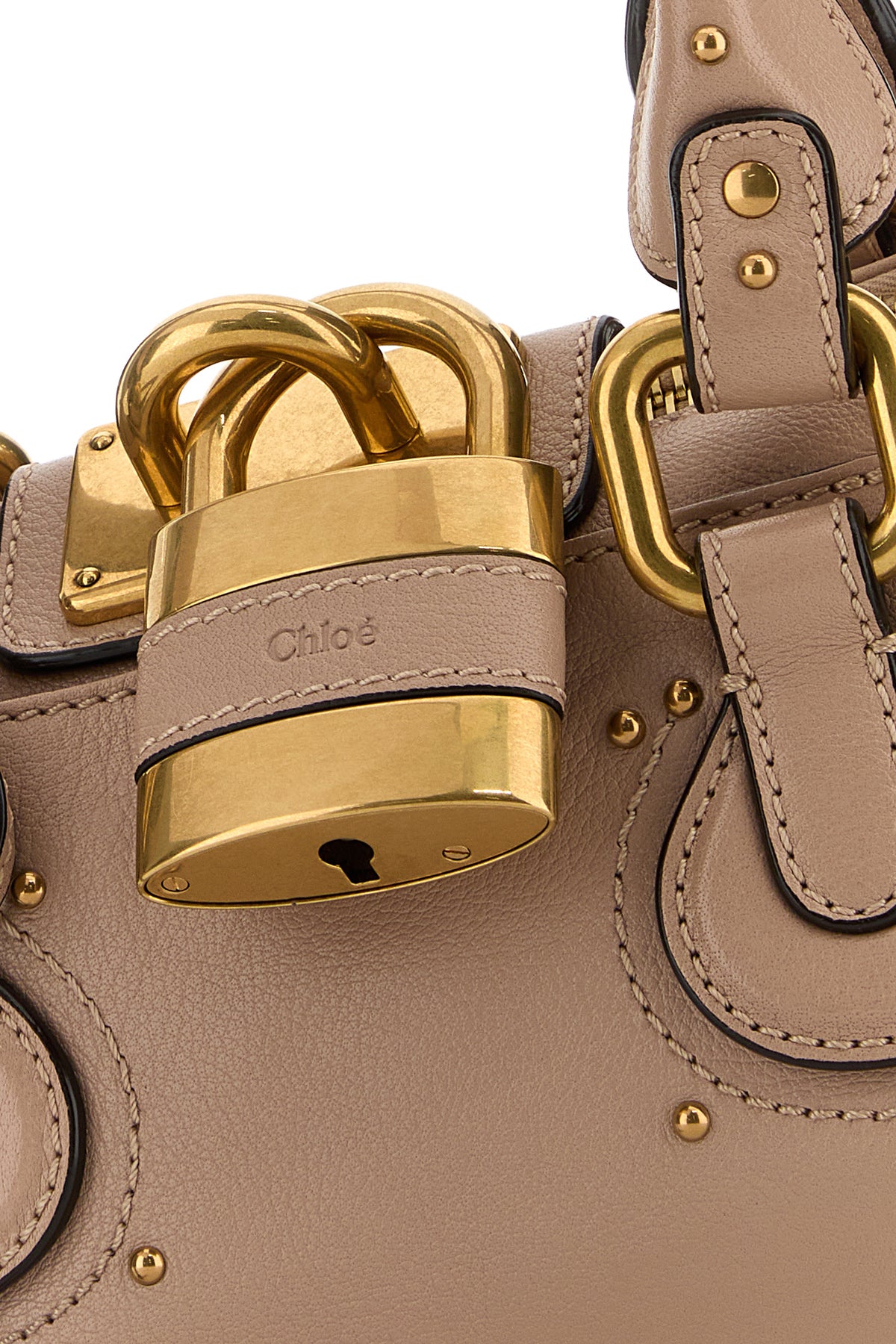 Handbag realized in pebble bovine leather enriched by logoed paddock-shaped logoed metal detail.