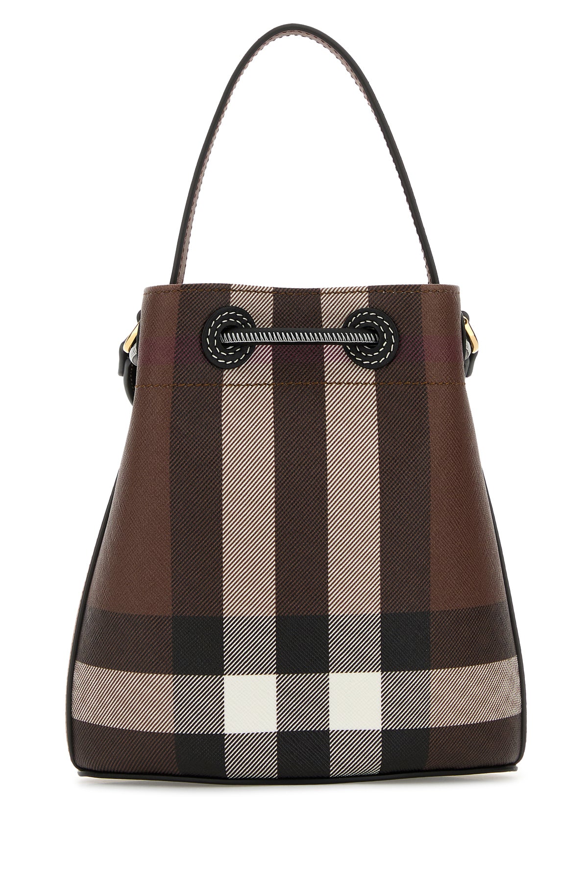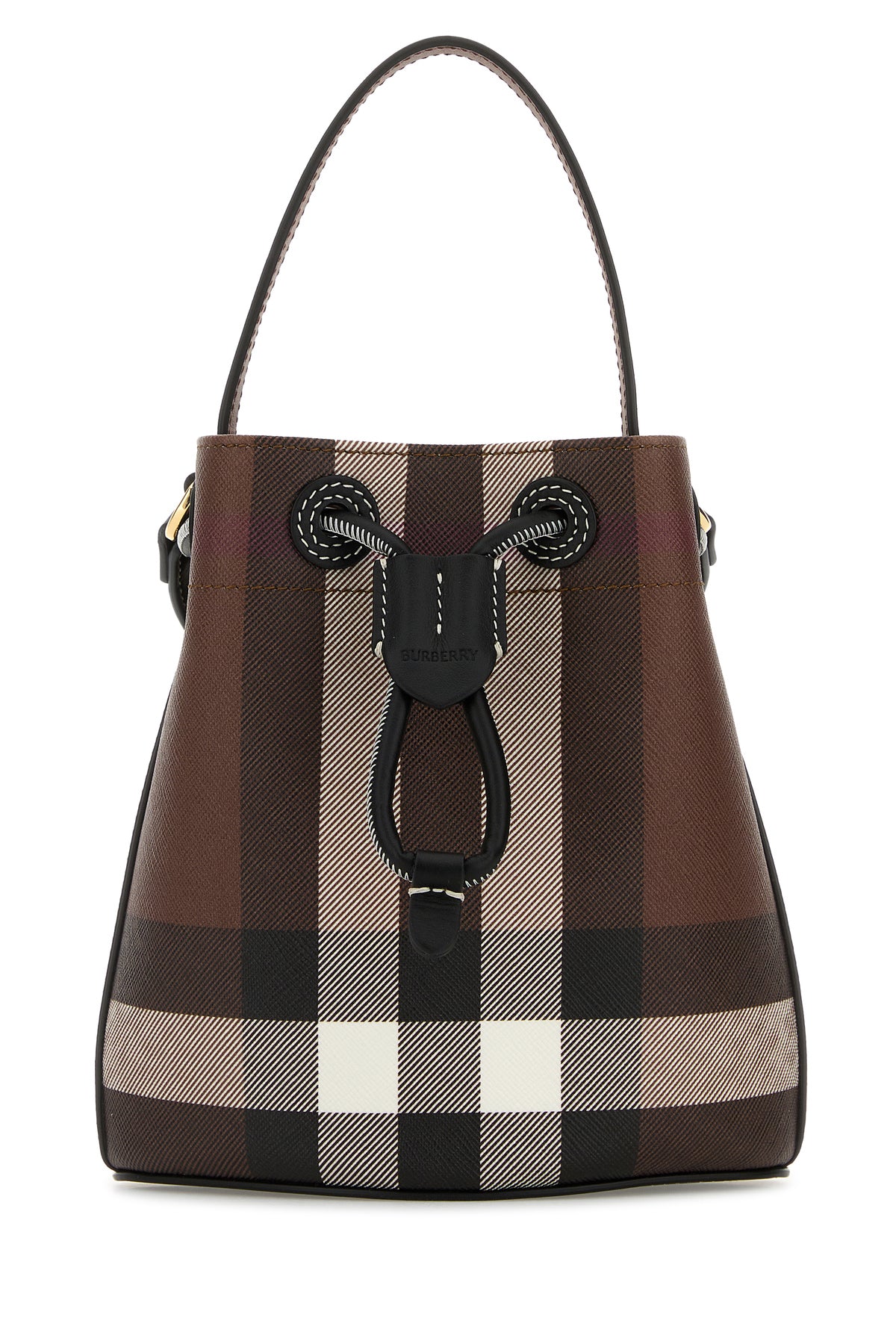 Bucket bag realized in coated canvas characterized by Burberry Check print on the entire surface.