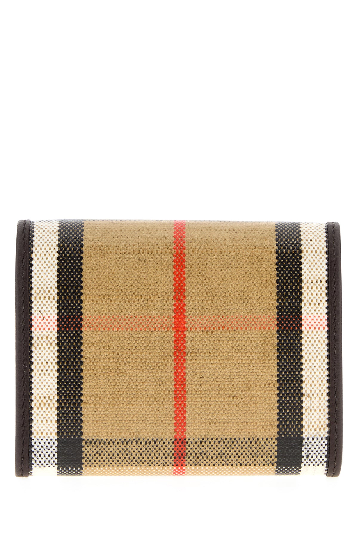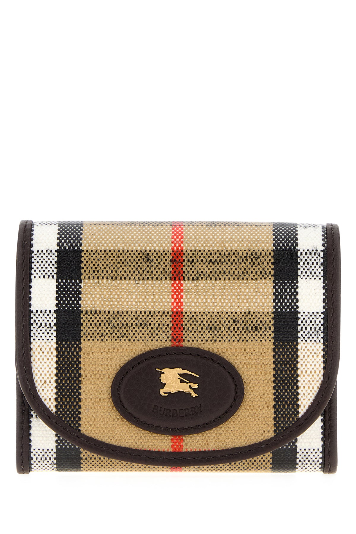 Wallet realized in coated canvas characterized by Burberry Check print on the entire surface enriched by Equestrian Knight print at the front.