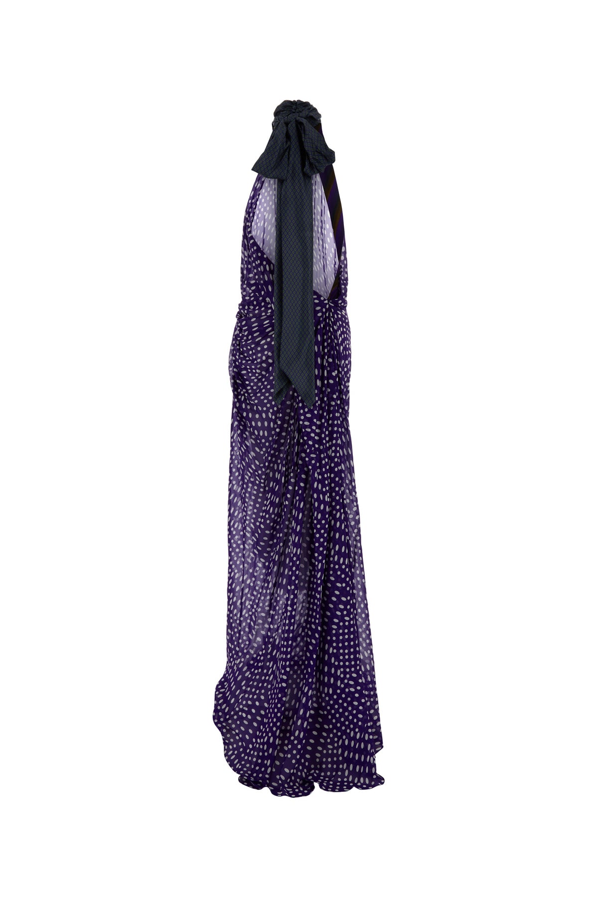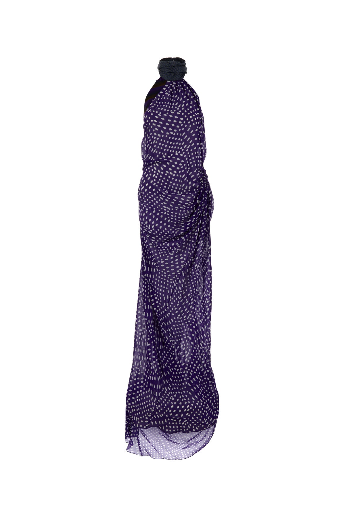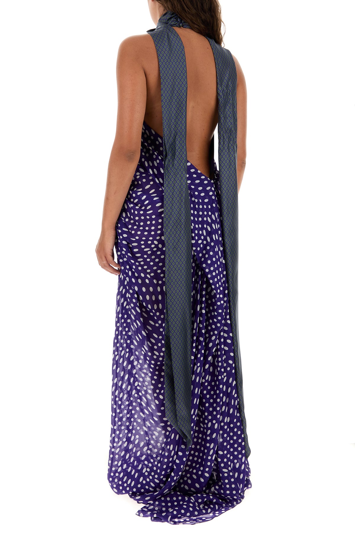 Long dress realized in crepe characterized by polka doit print on the entire surface.