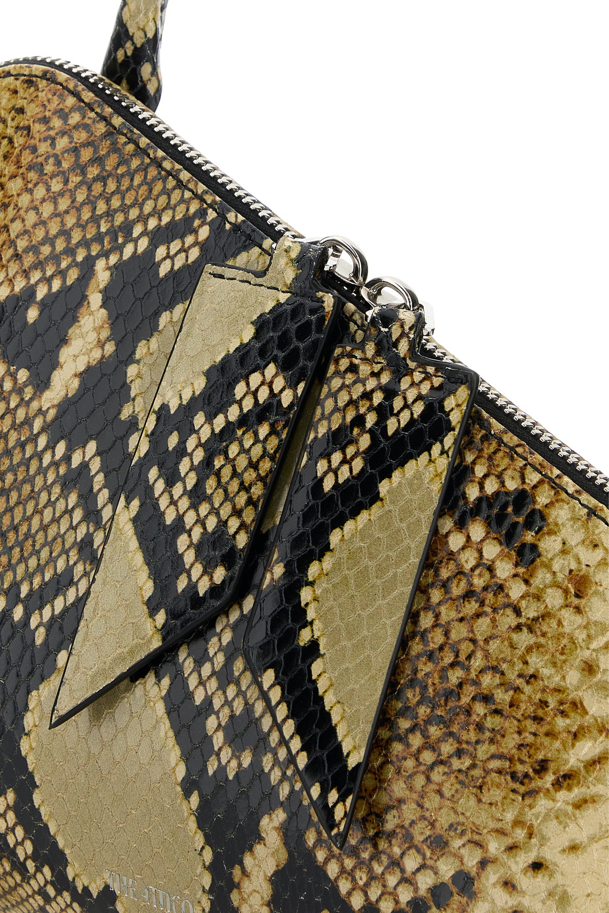 Shoulder bag realized in leather characterized by animal print on the entire surface and laminated printed logo at the front.