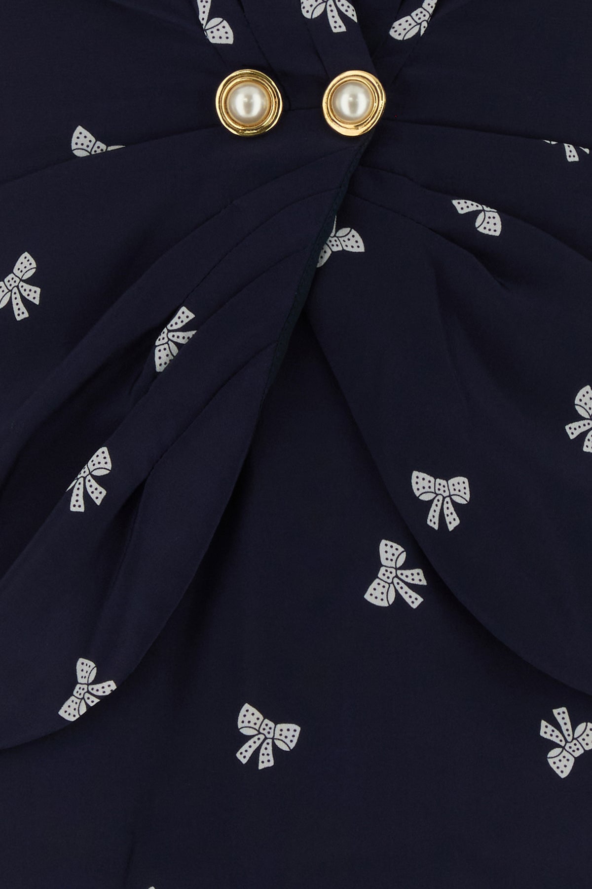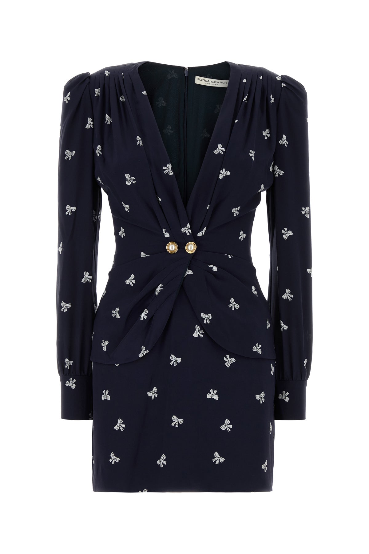Mini dress realized in pure silk characterized by Bow print on the entire surface.