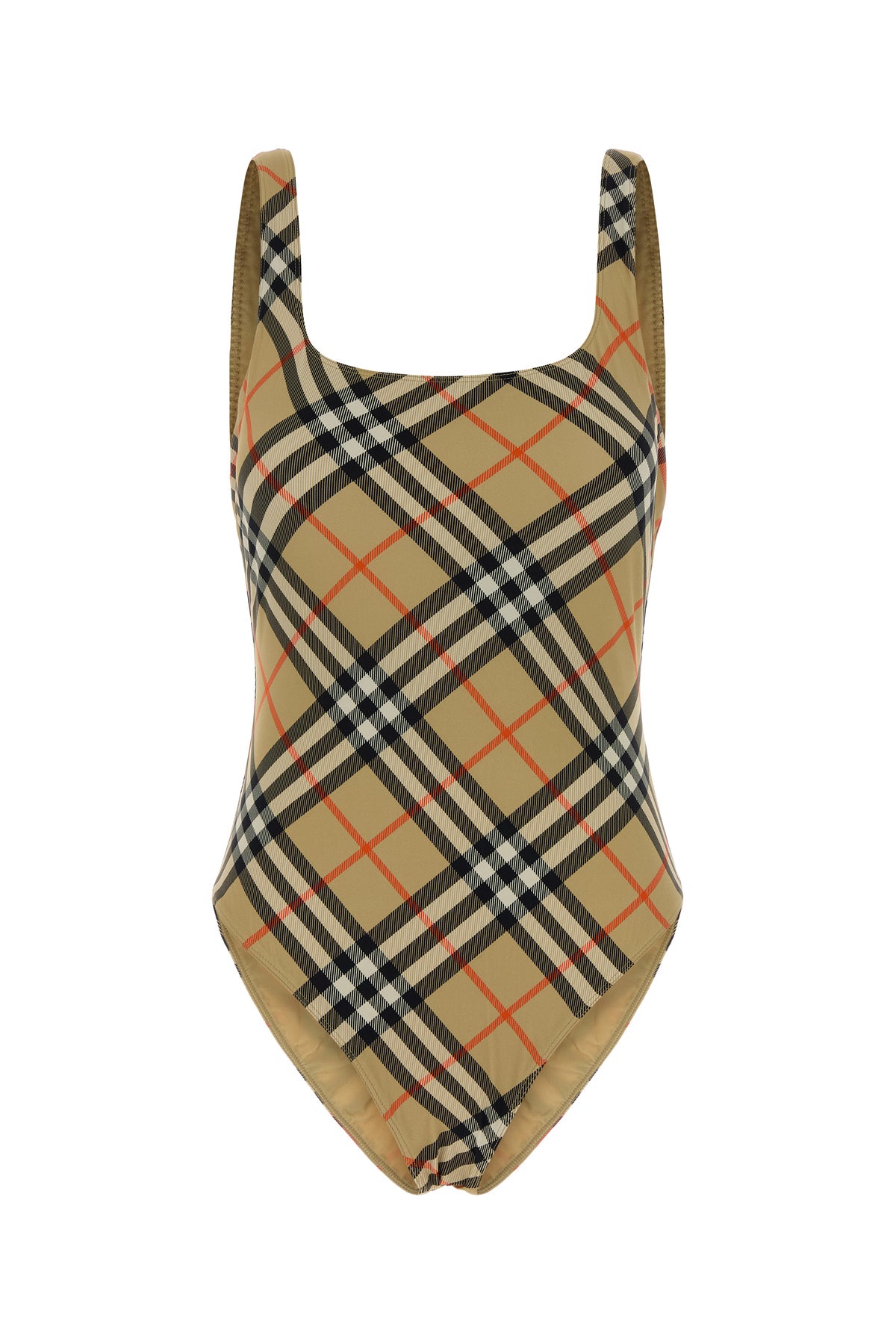 Swimsuit realized in stretch nylon characterized by Burberry Check print on the entire surface.