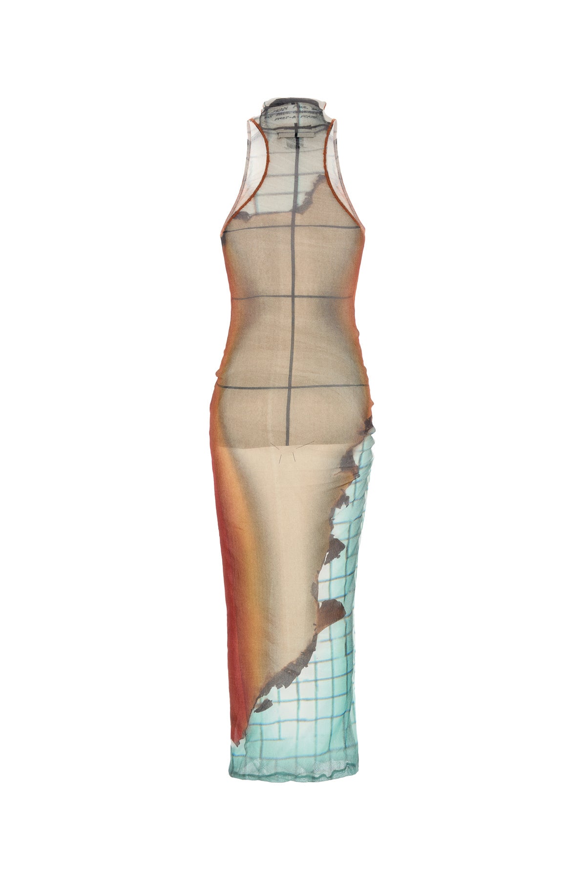 Long-cut dress realized in tulle characterized by Fire print on the entire surface.