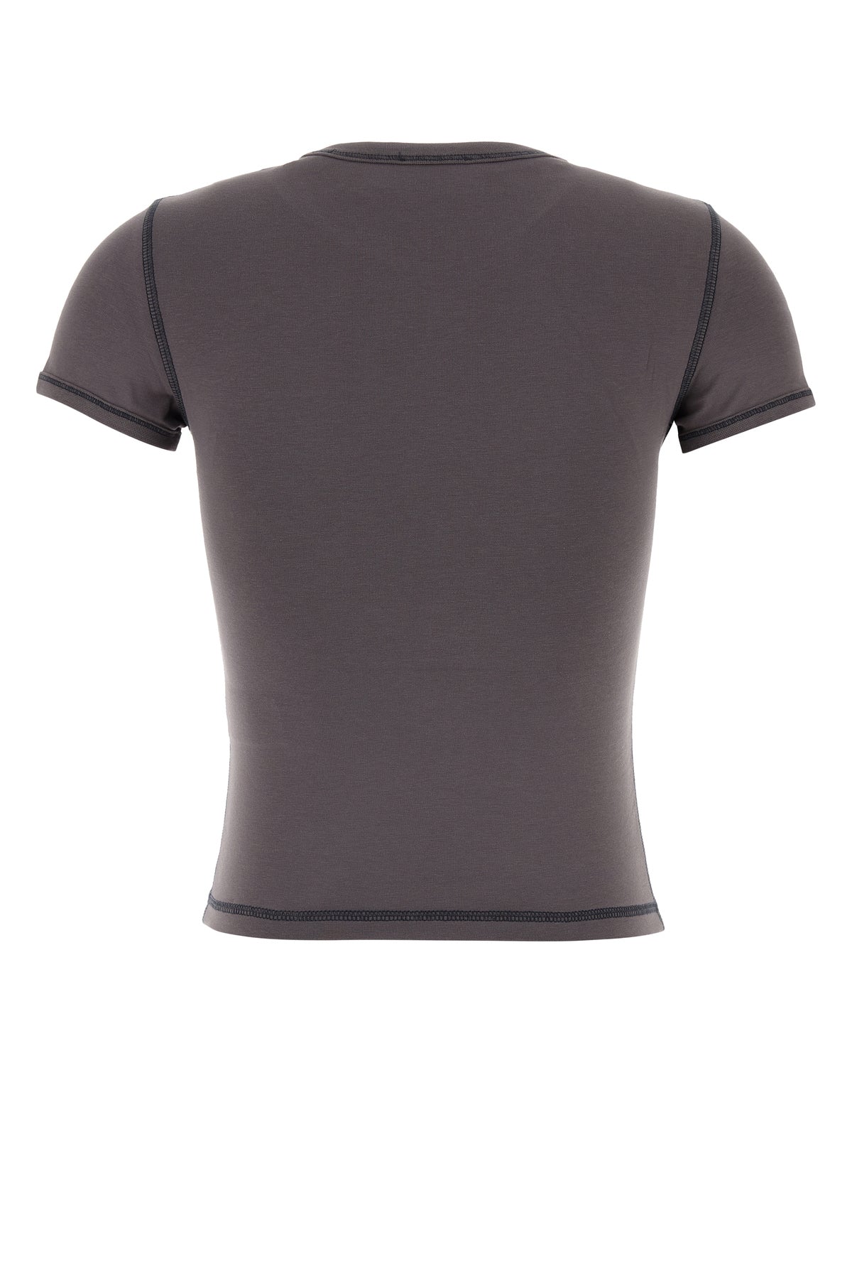 T-shirt realized in stonewashed stretch cotton characterized by D print with rhinestones at the front.