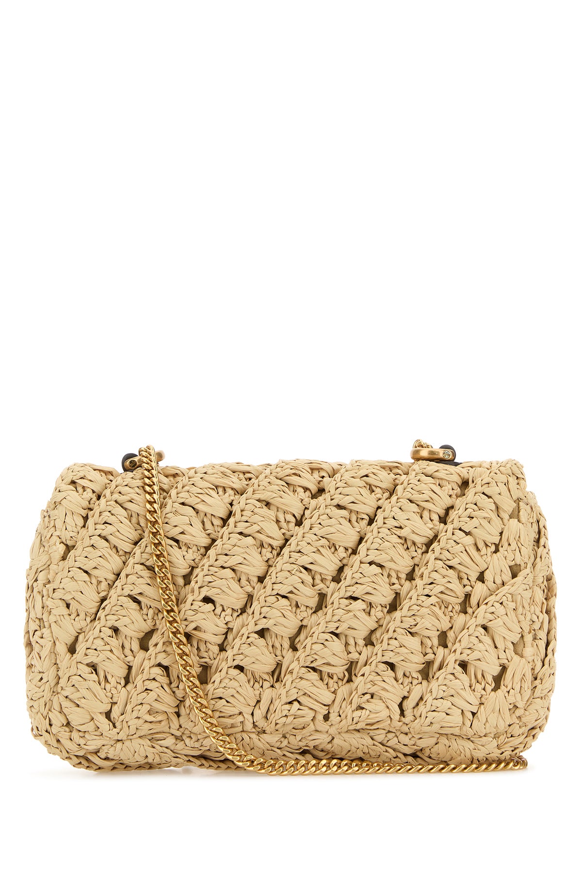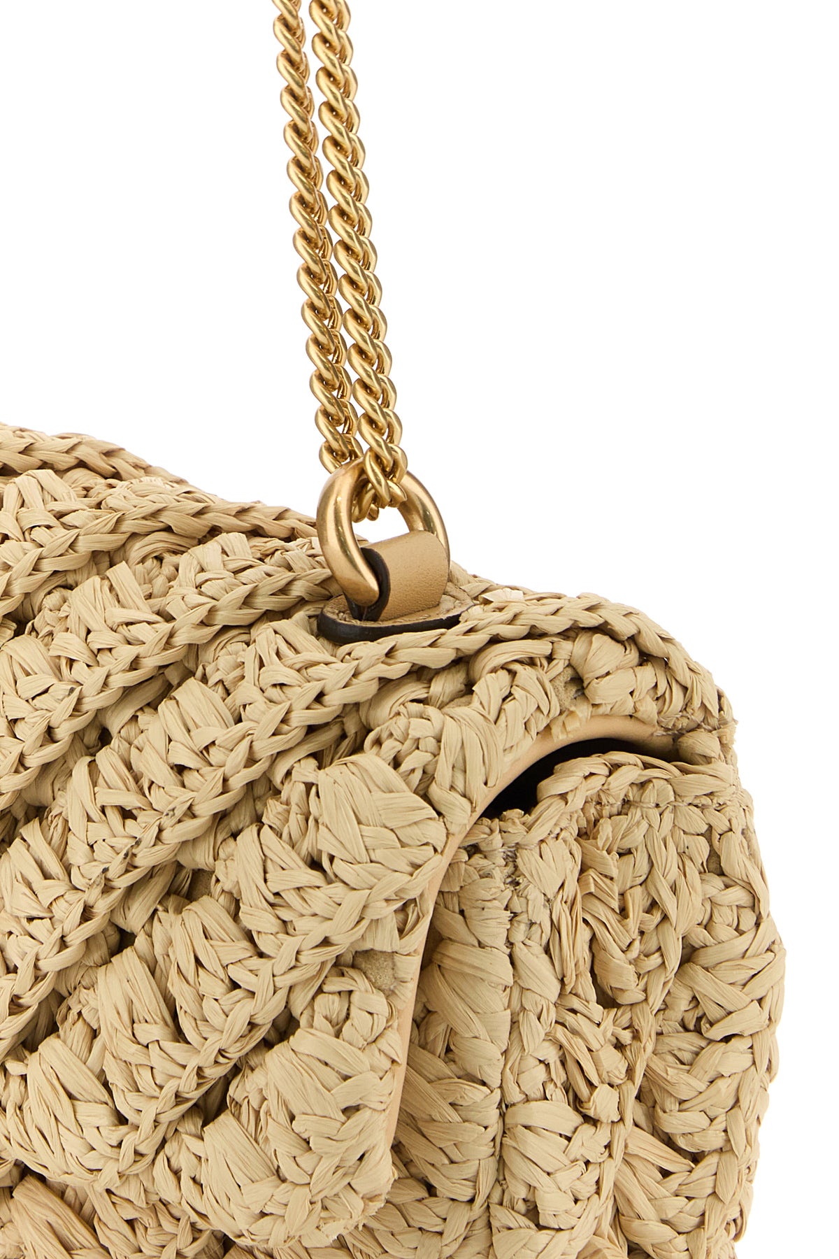 Shoulder bag realized in raffia enriched by logoed metal detail at the front.