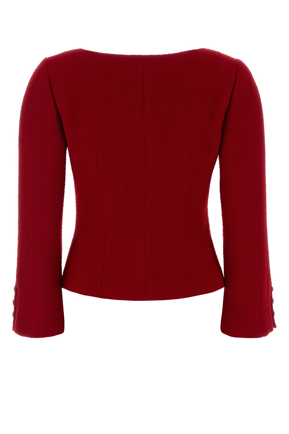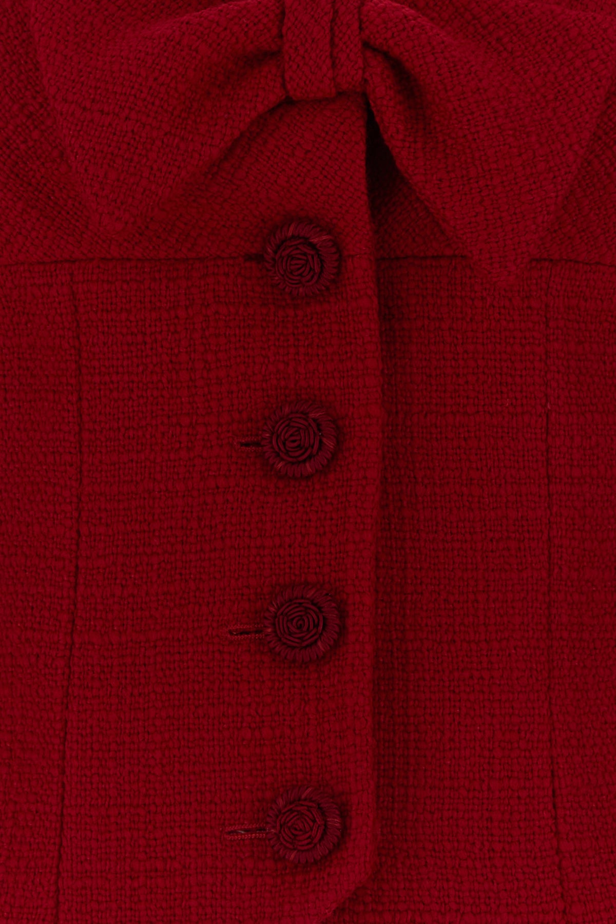 Blazer realized in boucle enriched by decorative bow on the round neckline.
