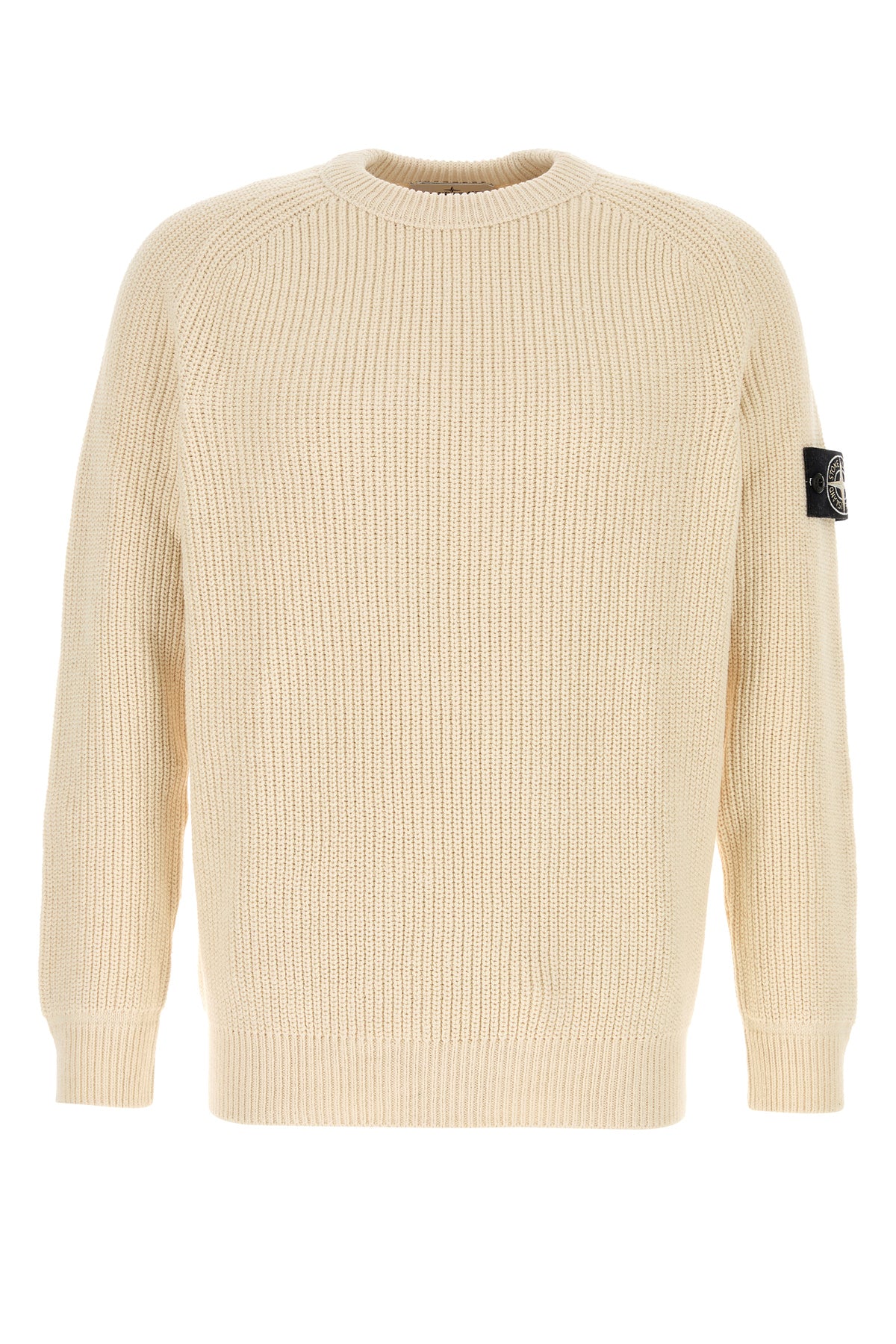 - Ribbed crew-neck, cuffs and hemline