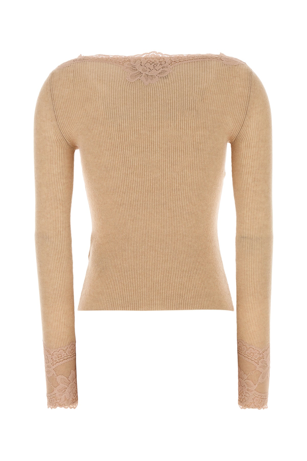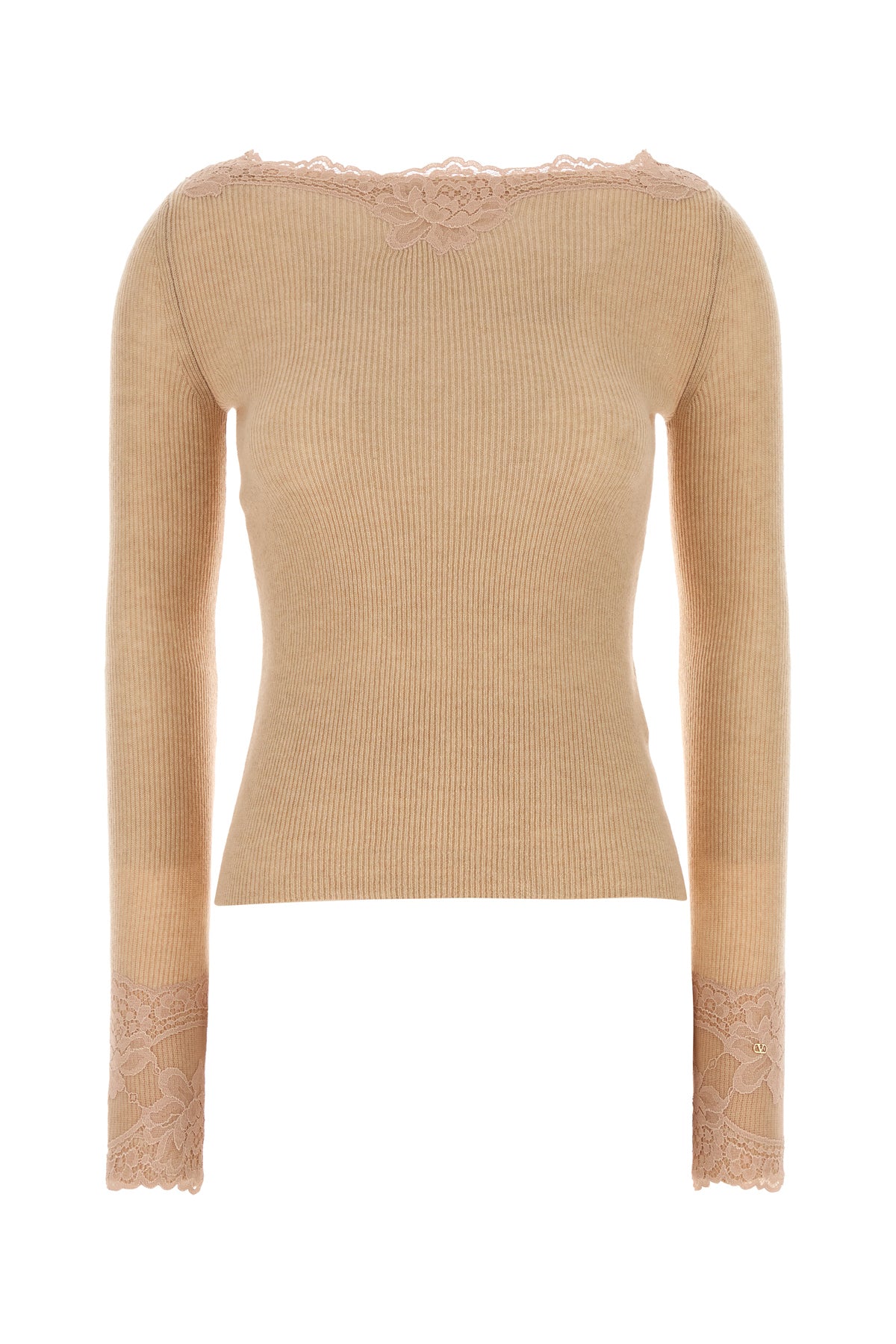 Long-sleeves t-shirt realized in pure cashmere with lace inserts on the neckline and on the cuffs.