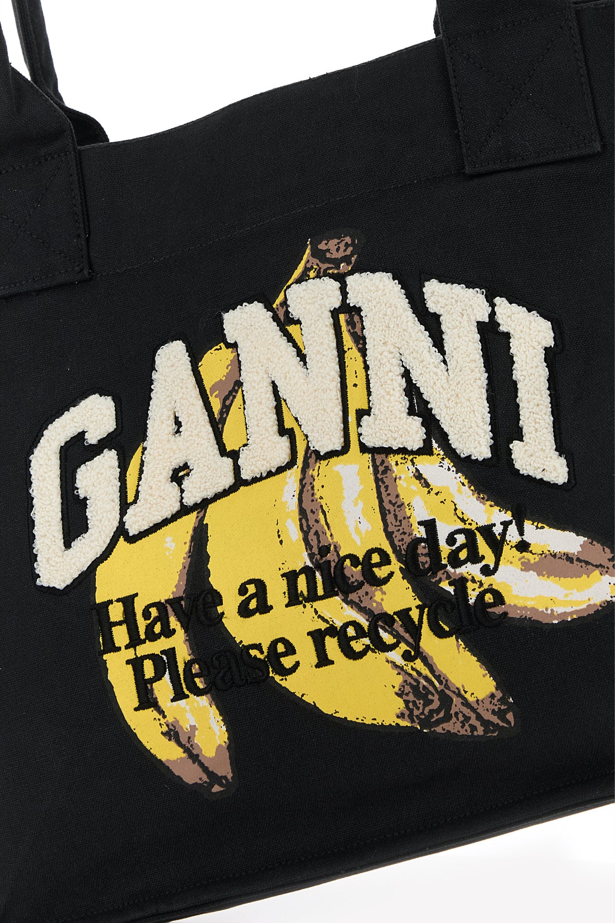 Shopping bag realized in canvas charactered by peculiar logoed embroidery at the front.