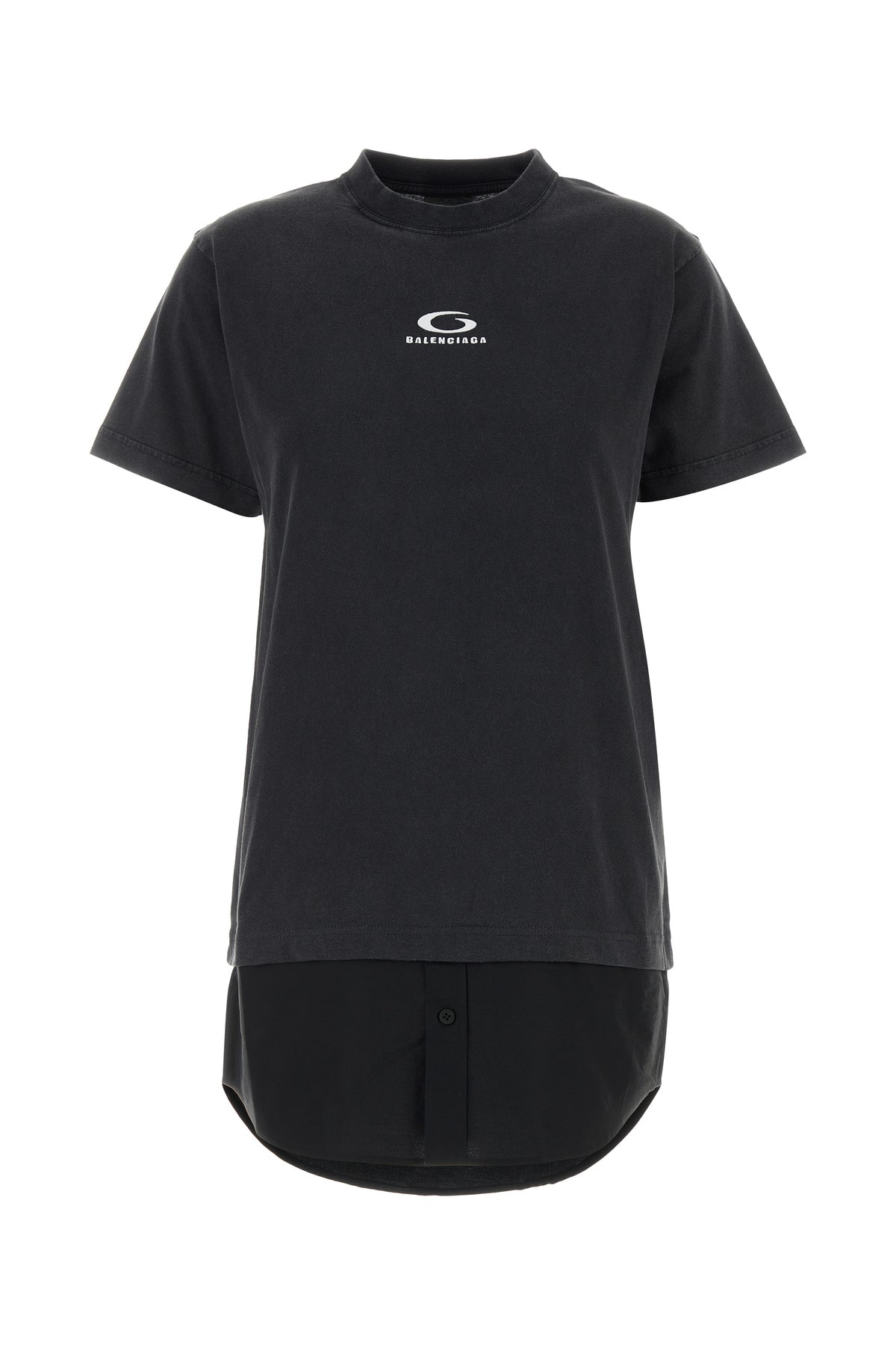 T-shirt dress realized in pure cotton with poplin insert on the hemline characterized by embroidered logo on the chest.
