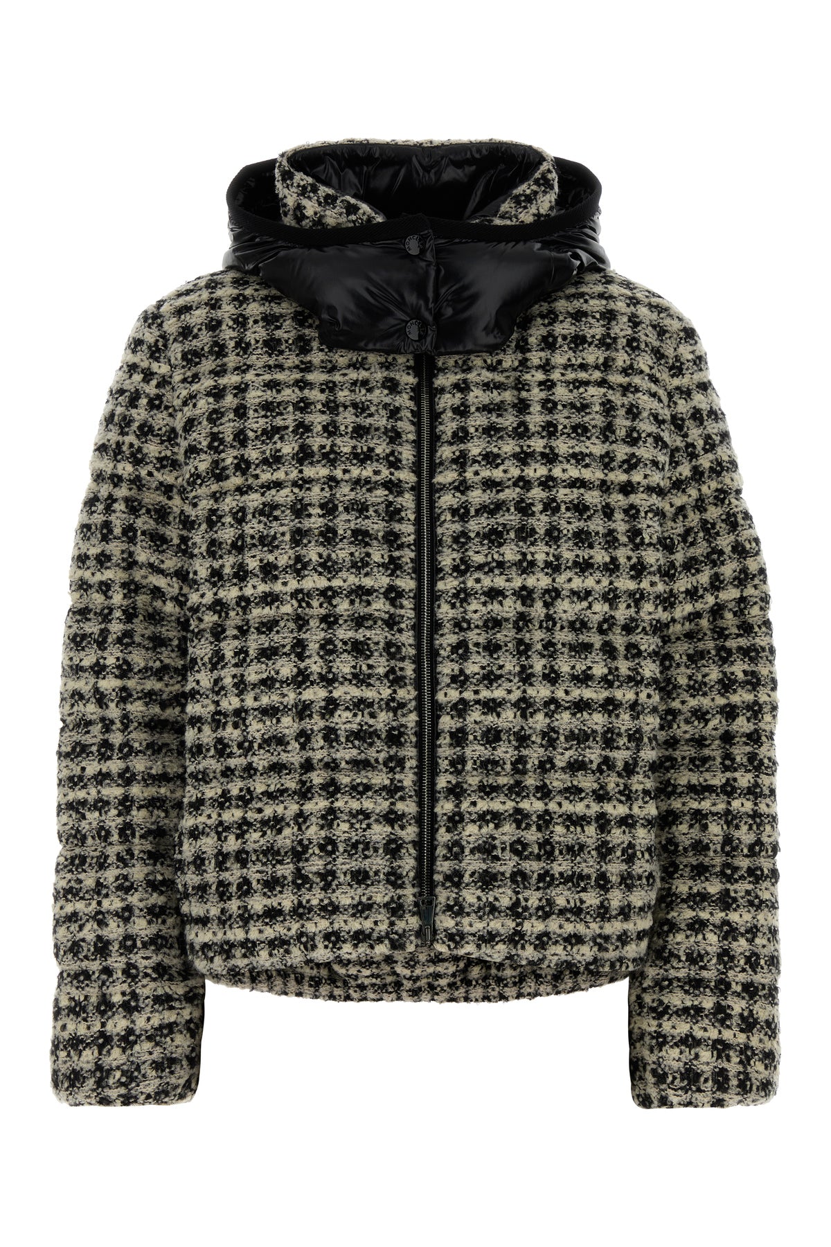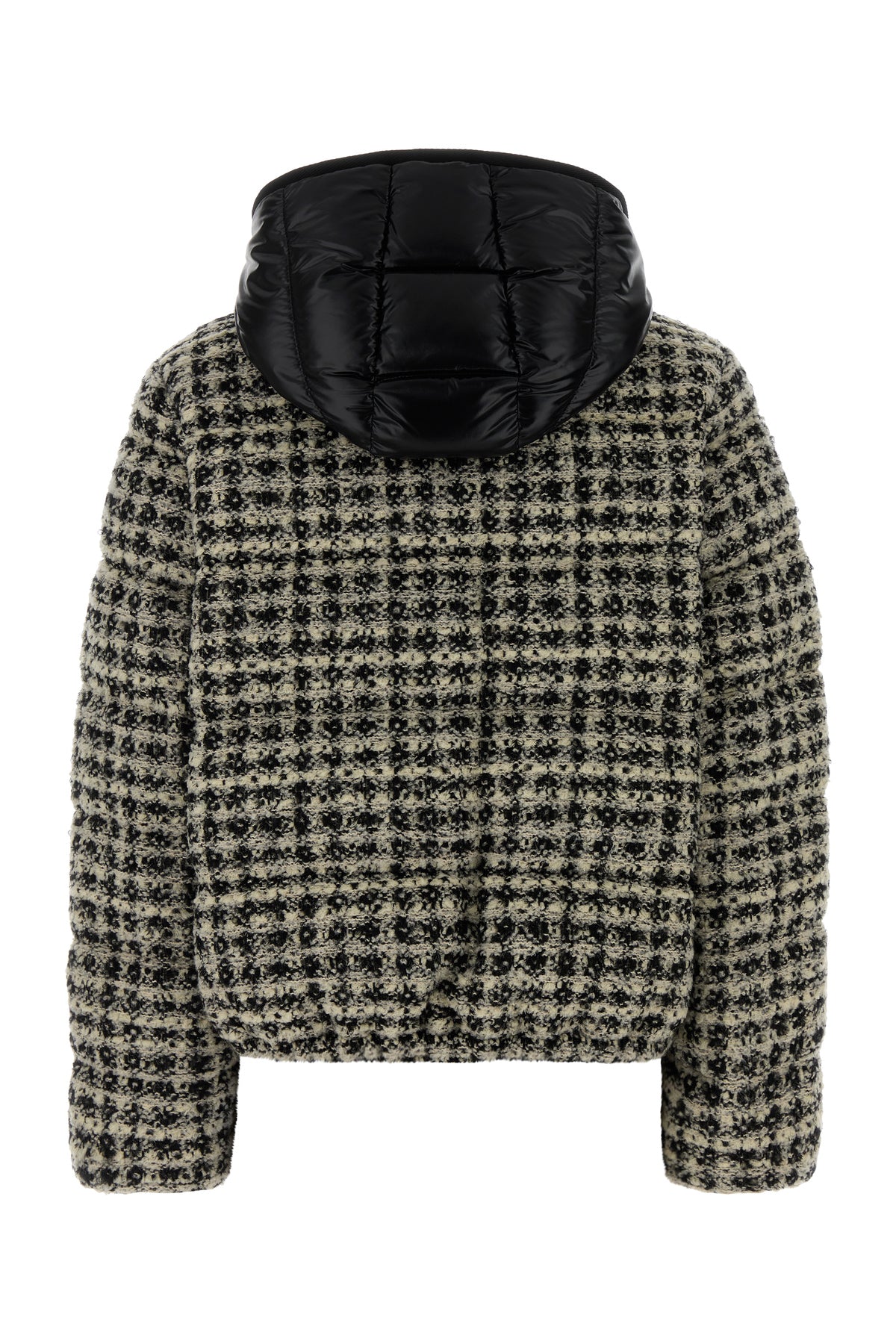 Down jacket realized in tweed with lurex threads enriched by logoed patch on the sleeve.