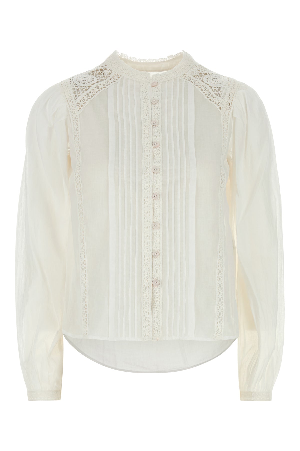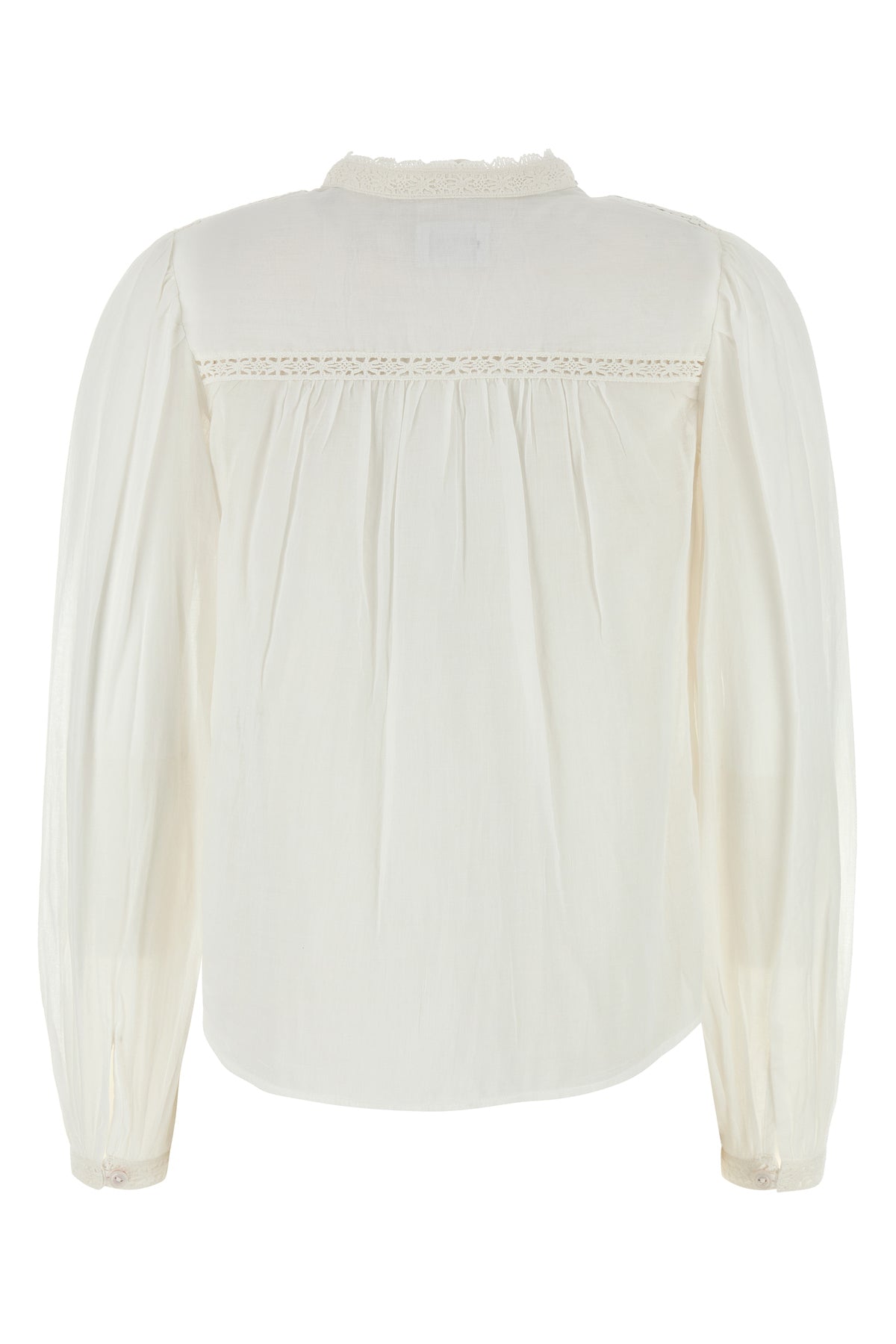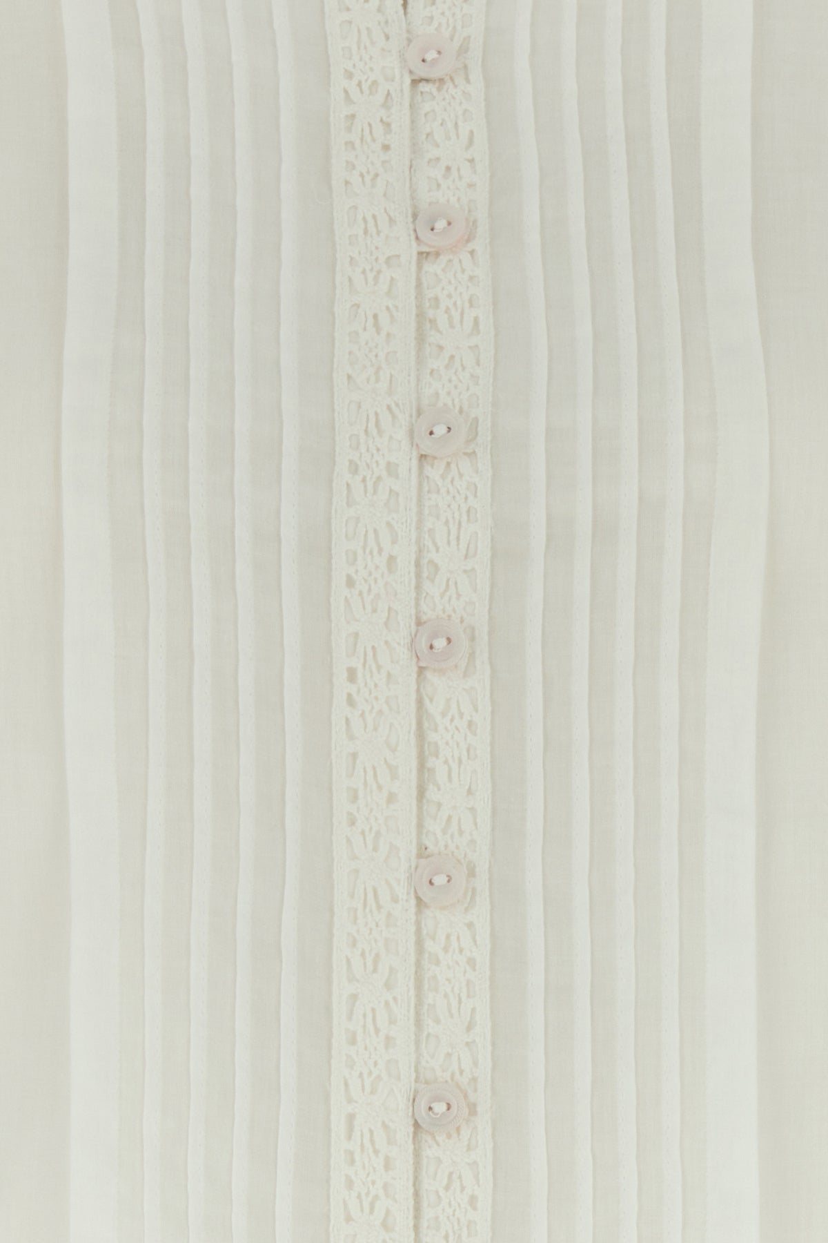 Semi-transparent shirt realized in pure cotton enriched by tonal lace inserts at the front and at the back.