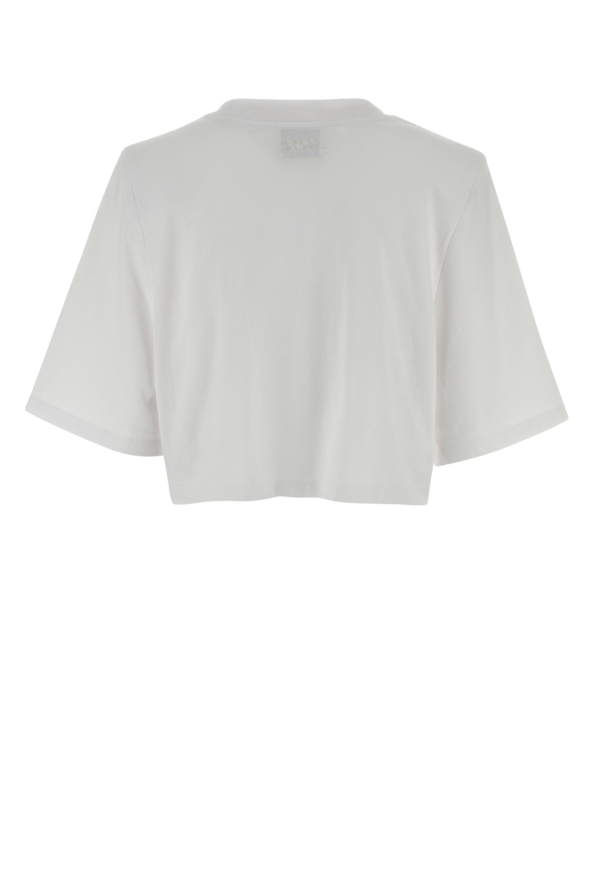 Cropped-cut oversize t-shirt realized in pure cotton characterized by tonal embroidered logo at the back.