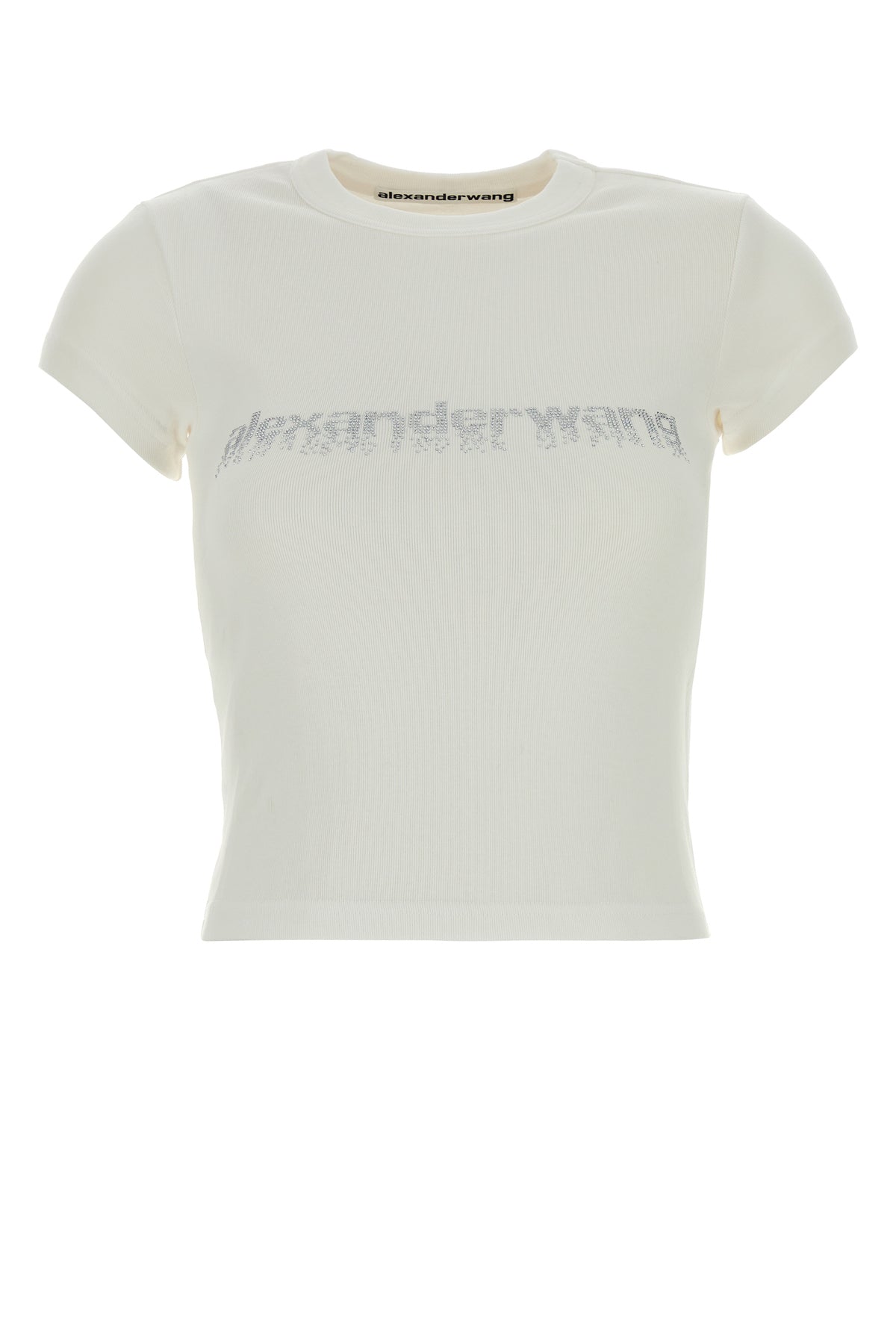 T-shirt realized in pure cotton characterized by rhinestones logo on the chest.