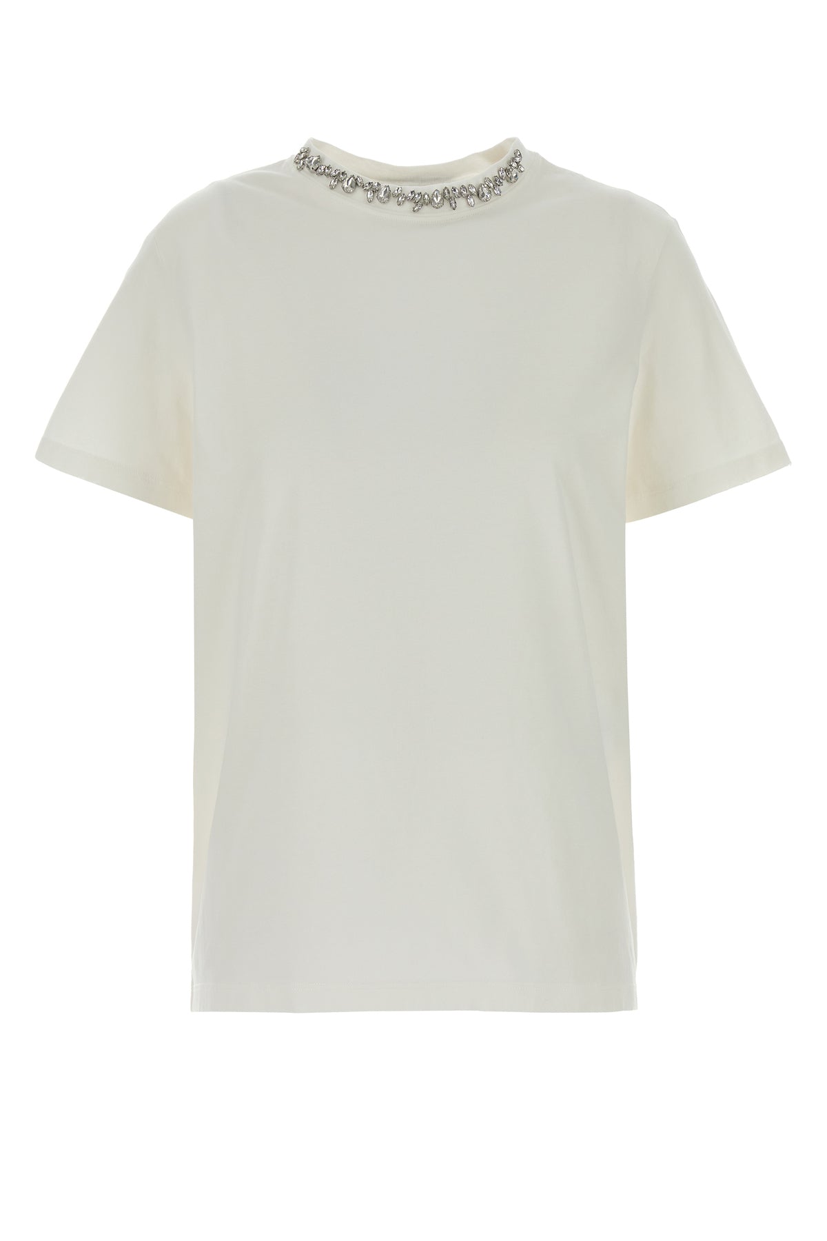 T-shirt realized in pure cotton enriched by jewel embellishment on the crew-neck and metal Half Star details at the back.