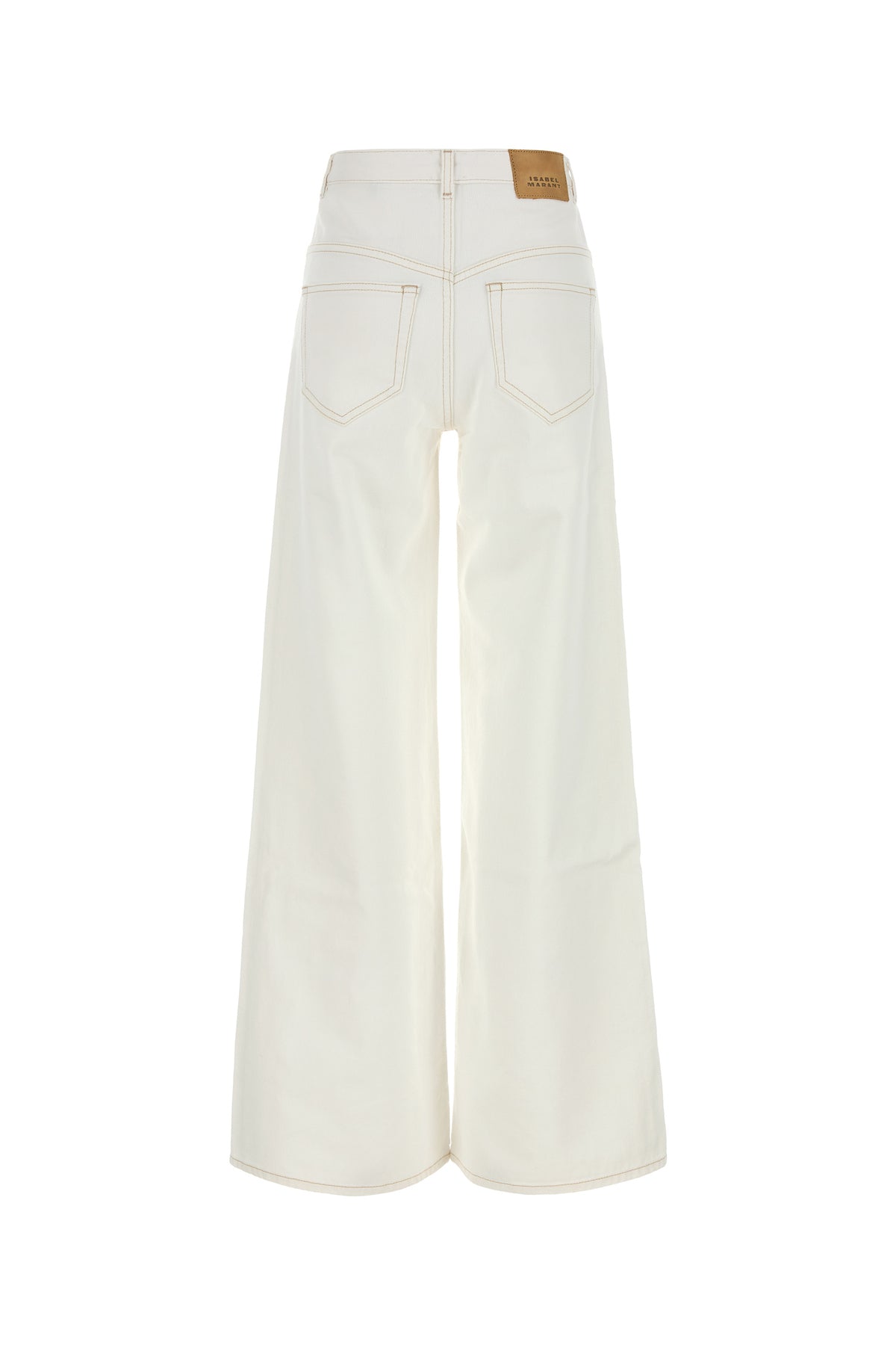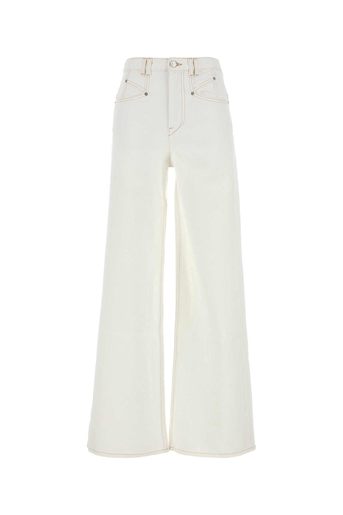 Flared leg jeans realized in pure cotton denim enriched by logoed label at the back.