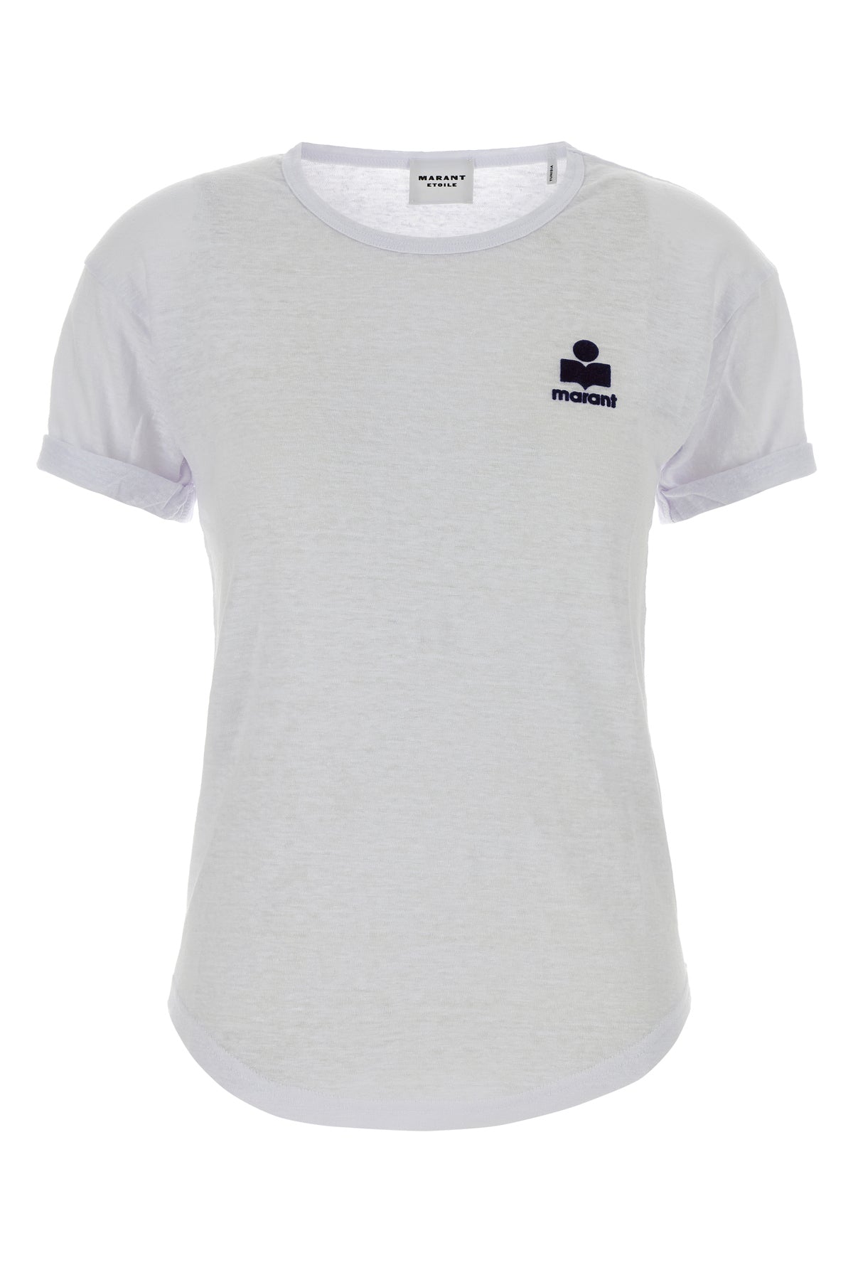 T-shirt realized in pure linen characterized by flocked printed logo on the chest.