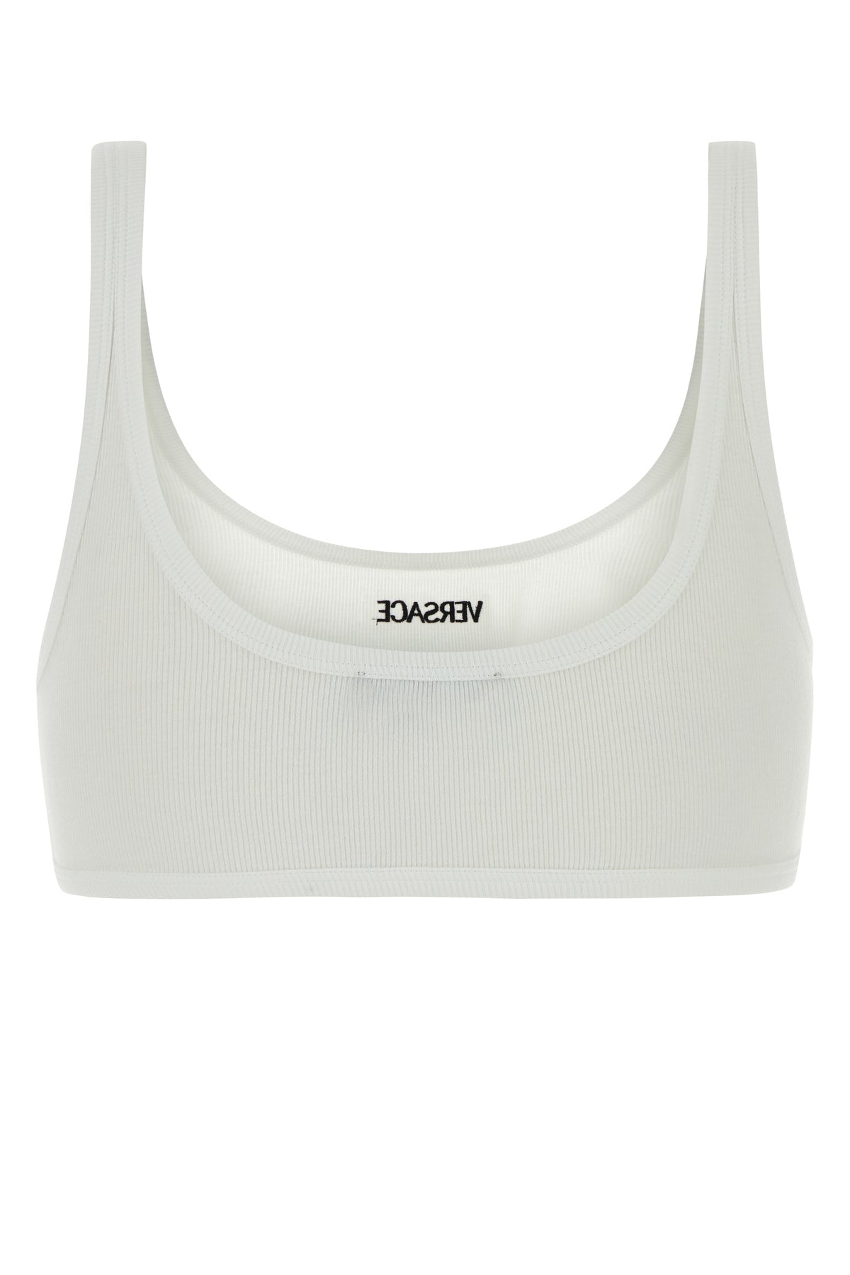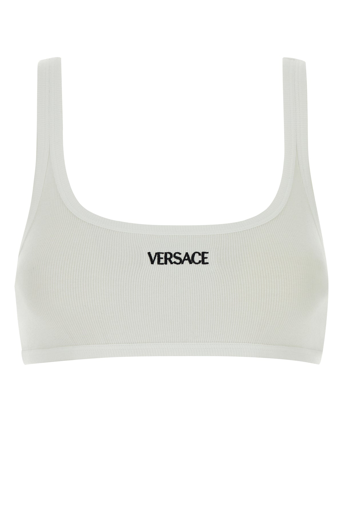 Bra realized in stretch cotton characterized by contrasting embroidered logo on the chest.
