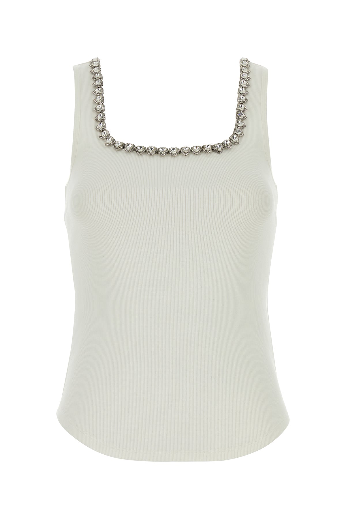 Tank top realized in ribbed stretch cotton enriched by jewel embellishment on the neckline.