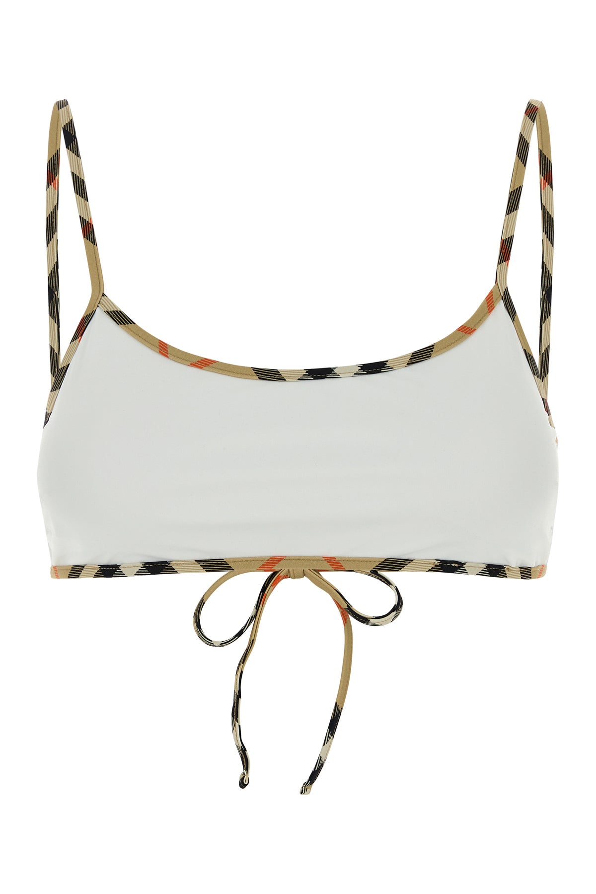 Bikini top realized in stretch nylon characterized by Burberry Check motif on the trimmings.
