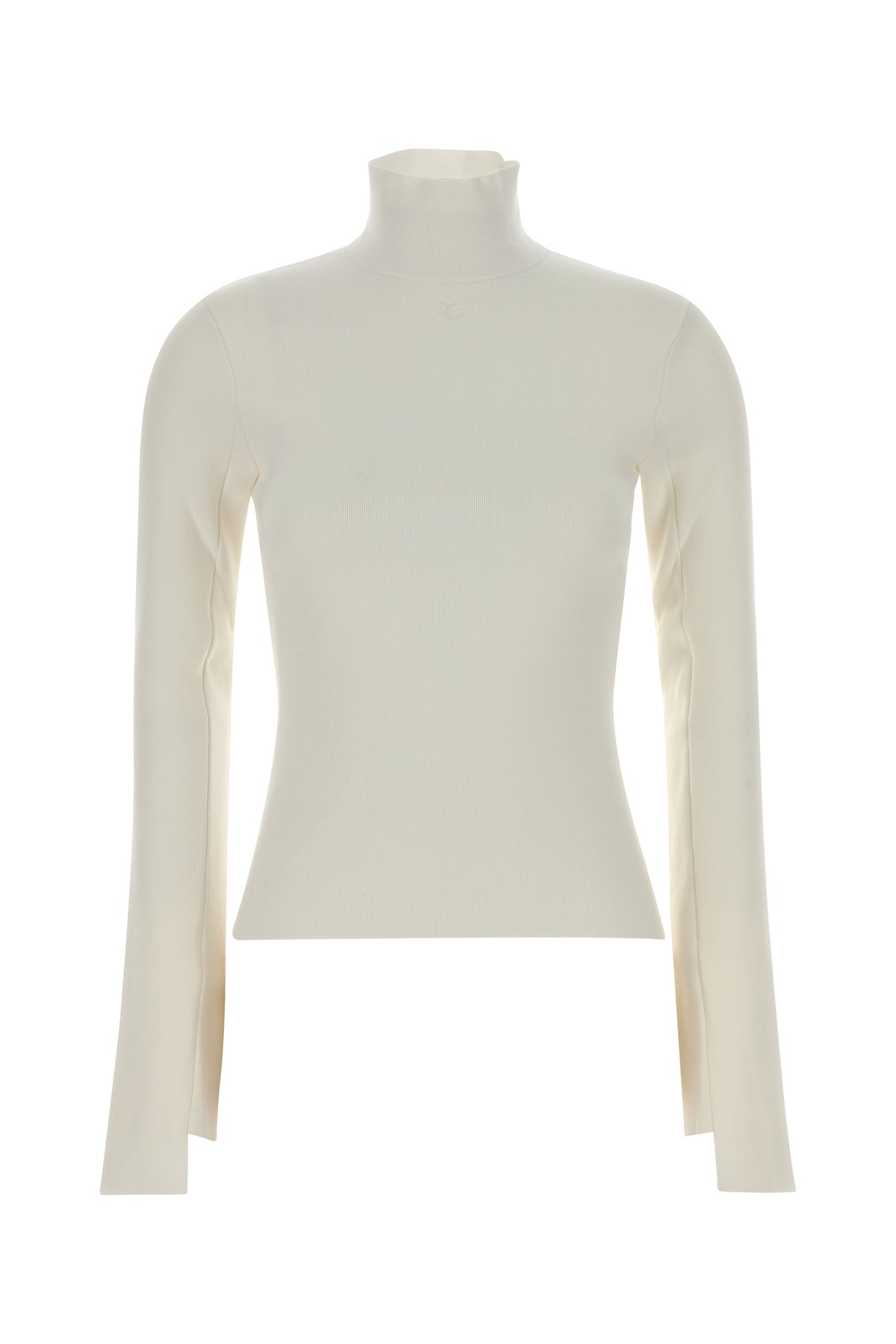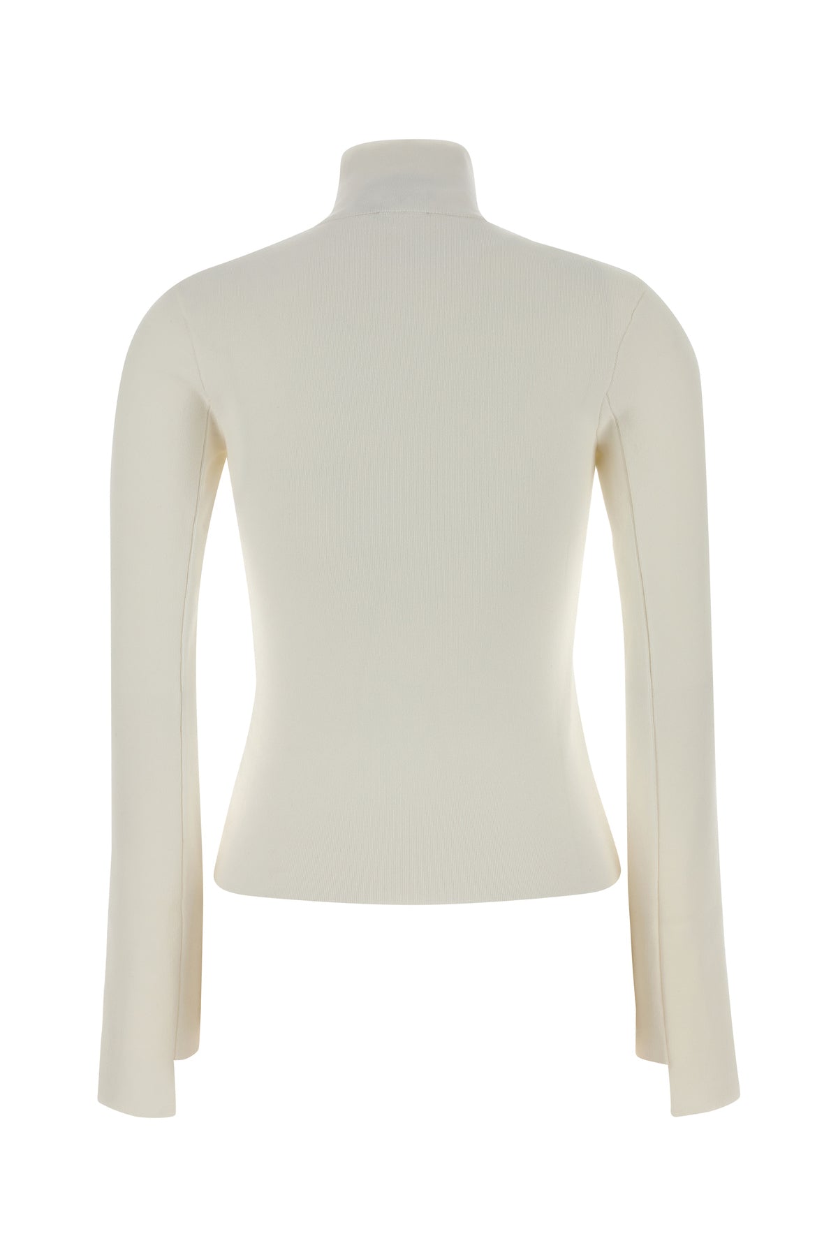 Sweater realized in viscose blend characterized by tonal embroidered logo on chest.