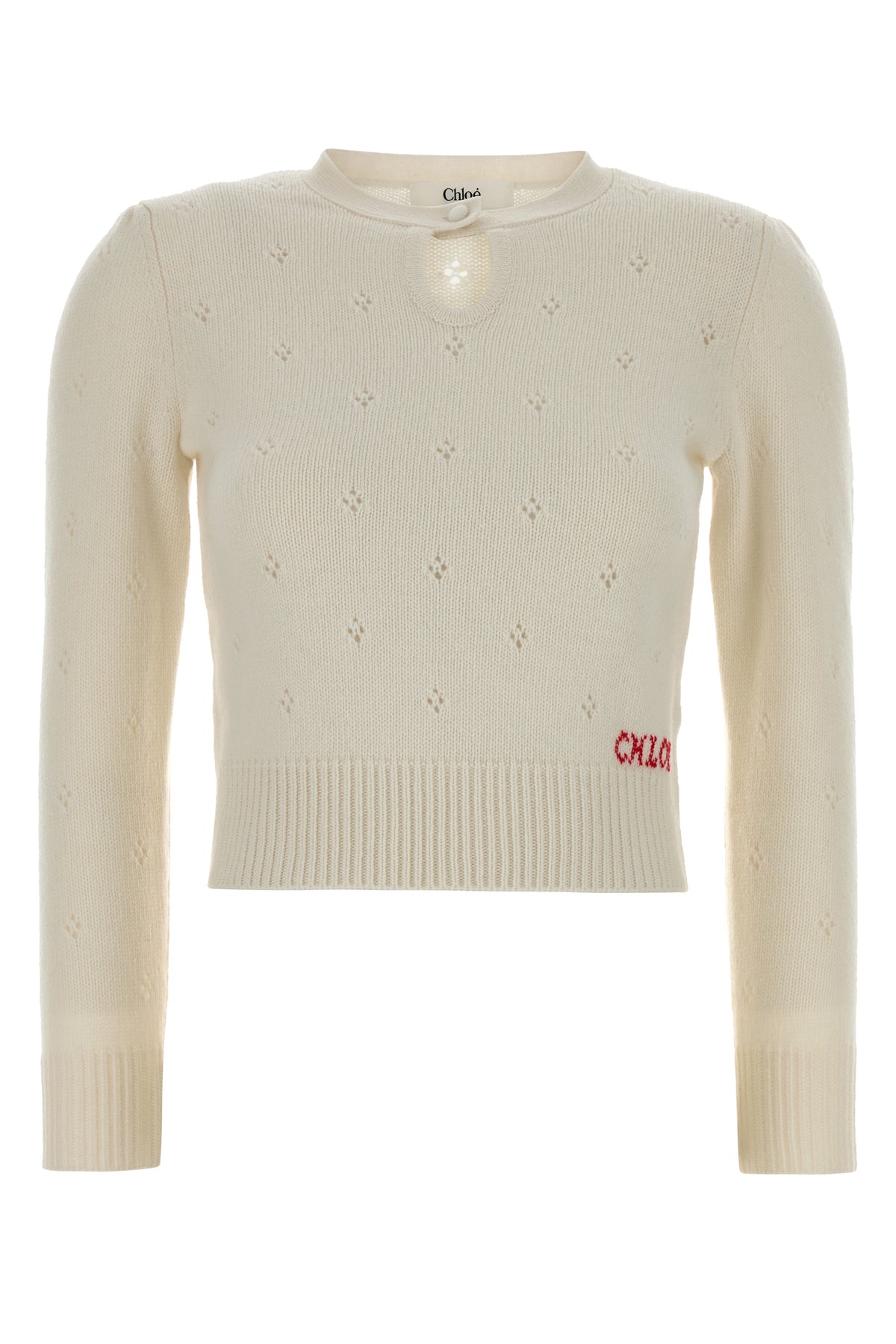 Sweater realized in wool and cashmere characterized by peculiar embroidery on the entire entire surface and embroidered logo on the hemline.