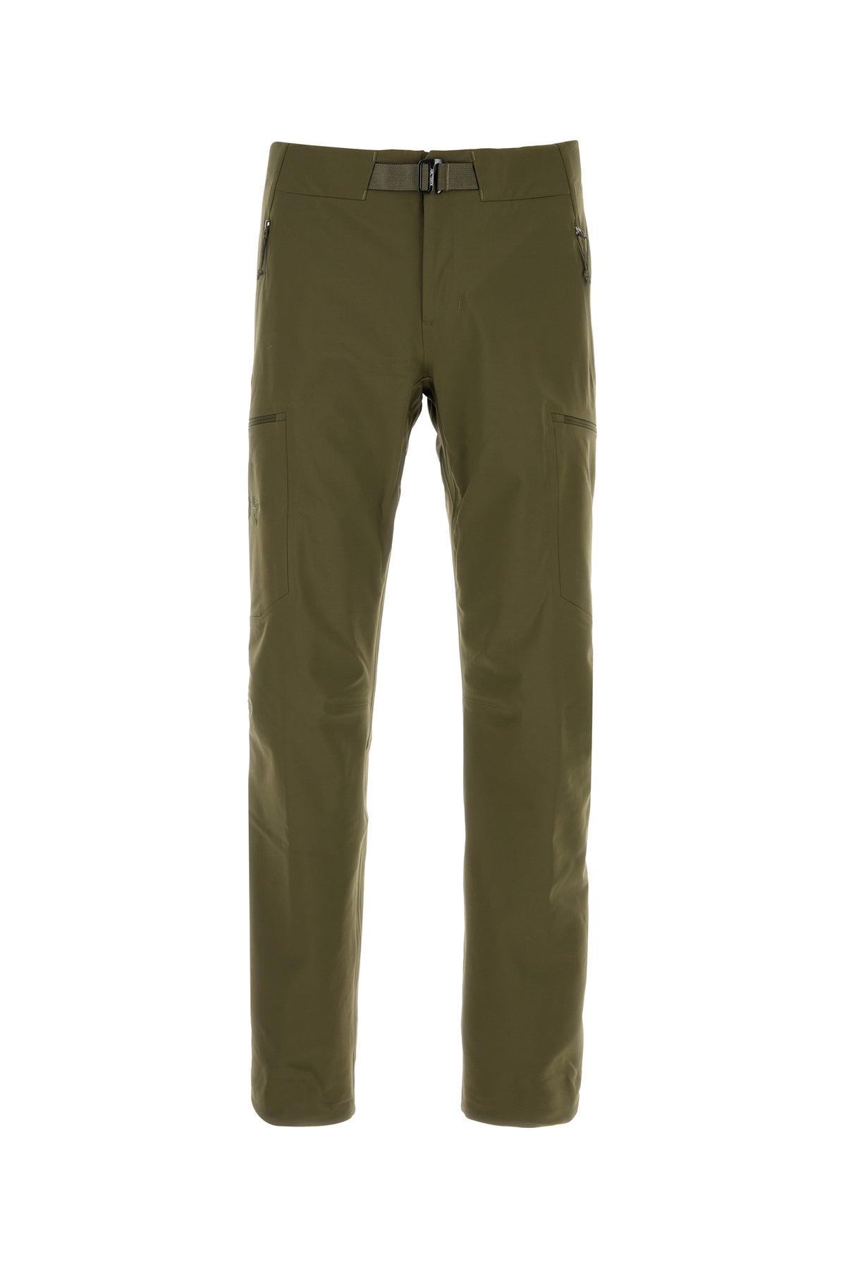 Pant realized in stretch nylon characterized by tonale embroidered logo at the front.