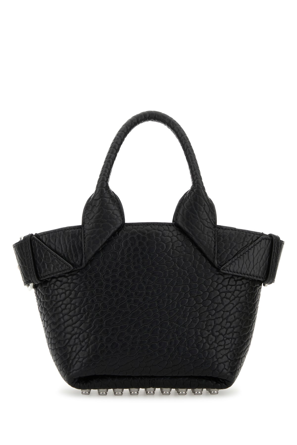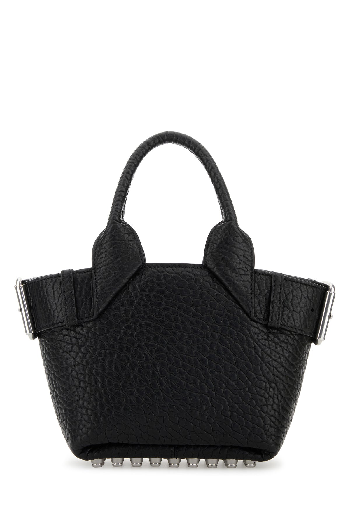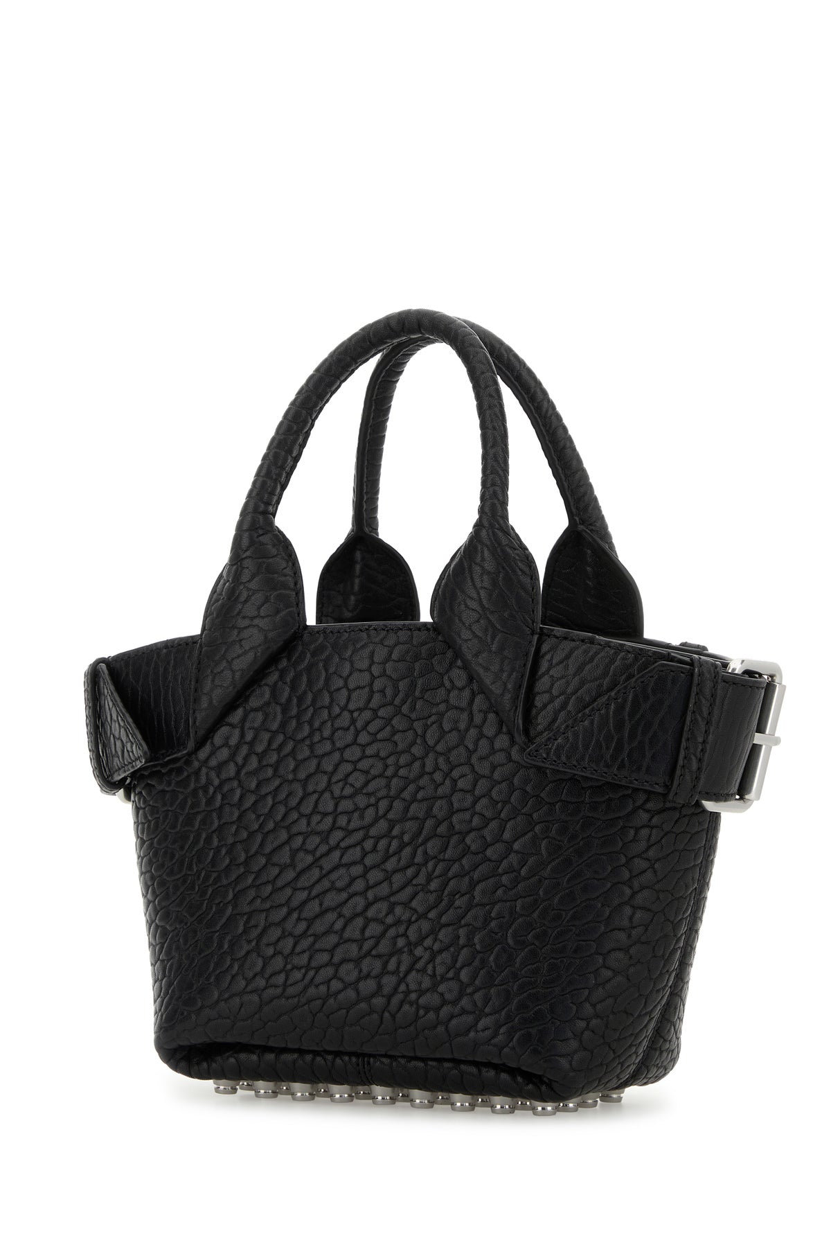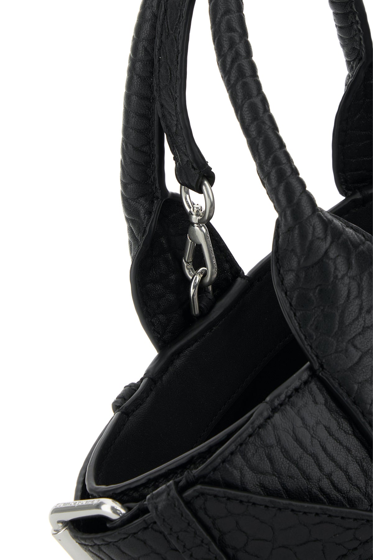 Handbag realized in pebble lamb leather characterized by lateral compression straps.