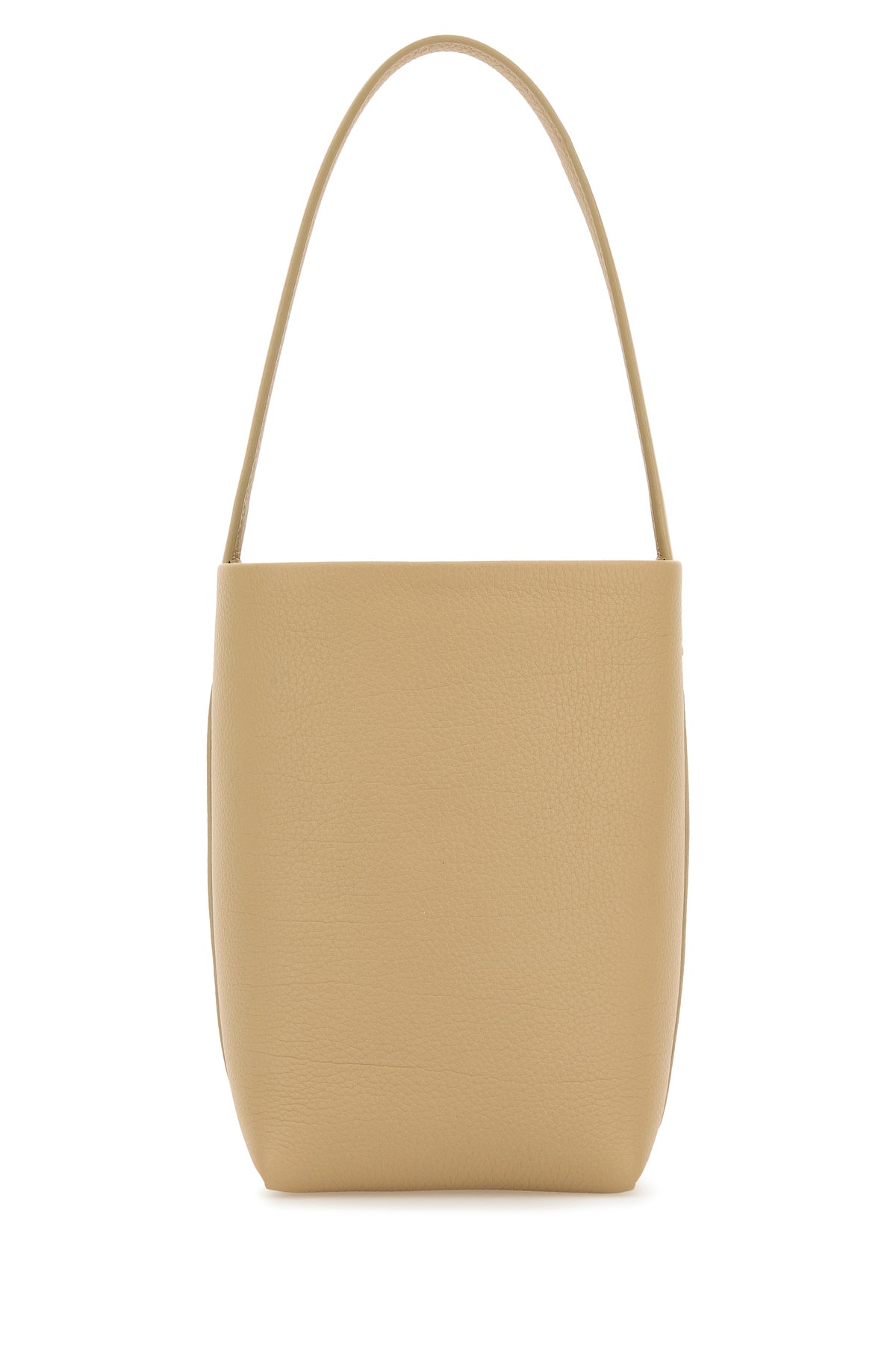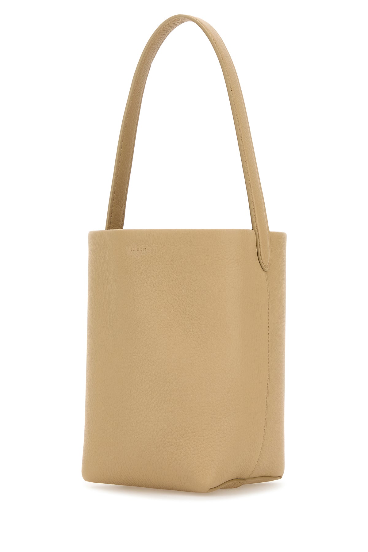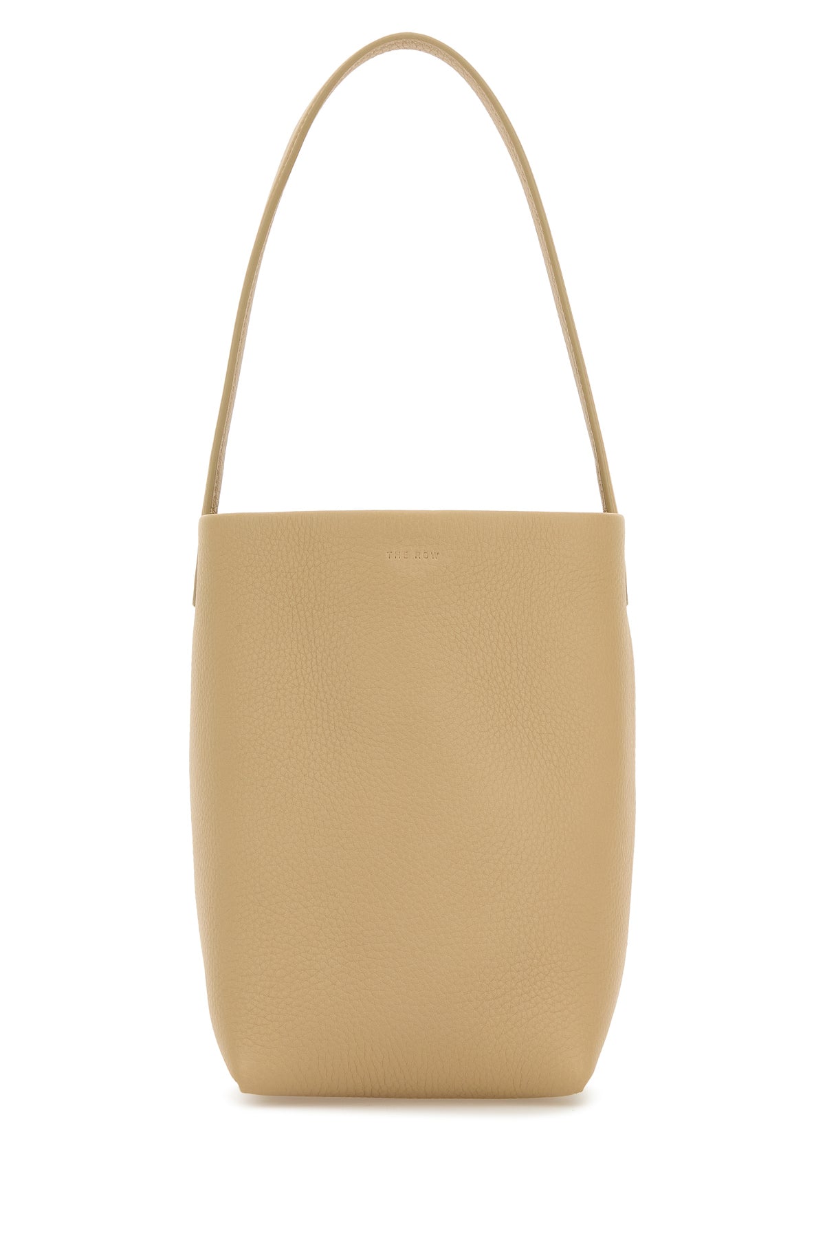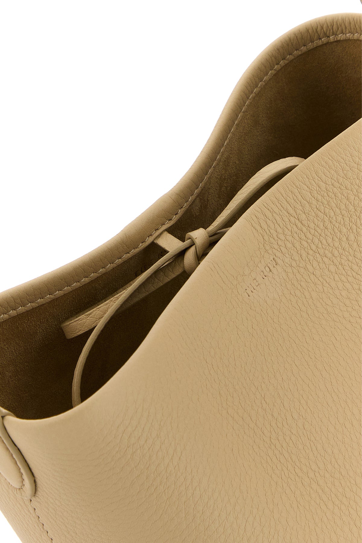Bucket bag realized in pebble leather characterized by embossed logo at the top.