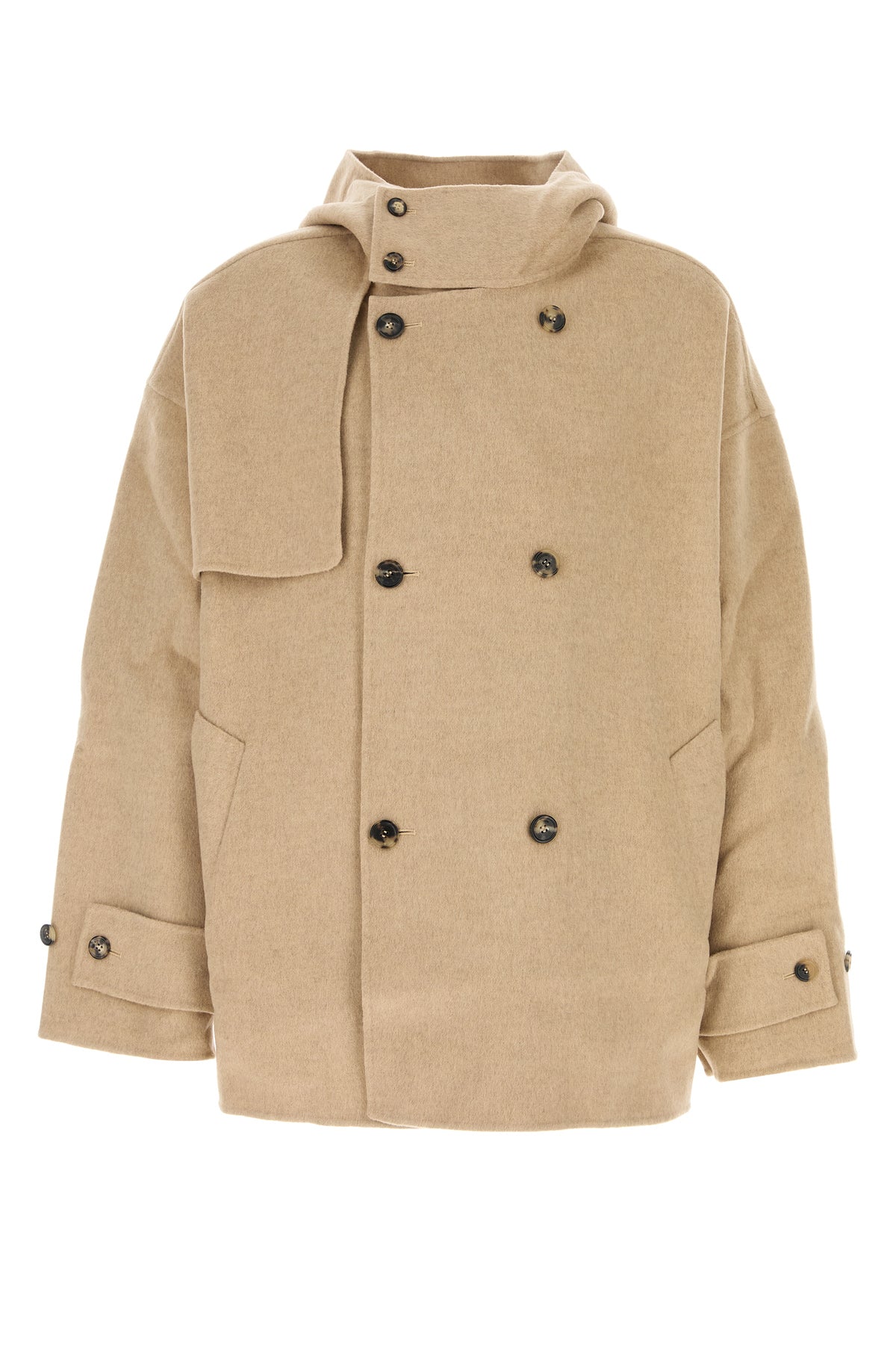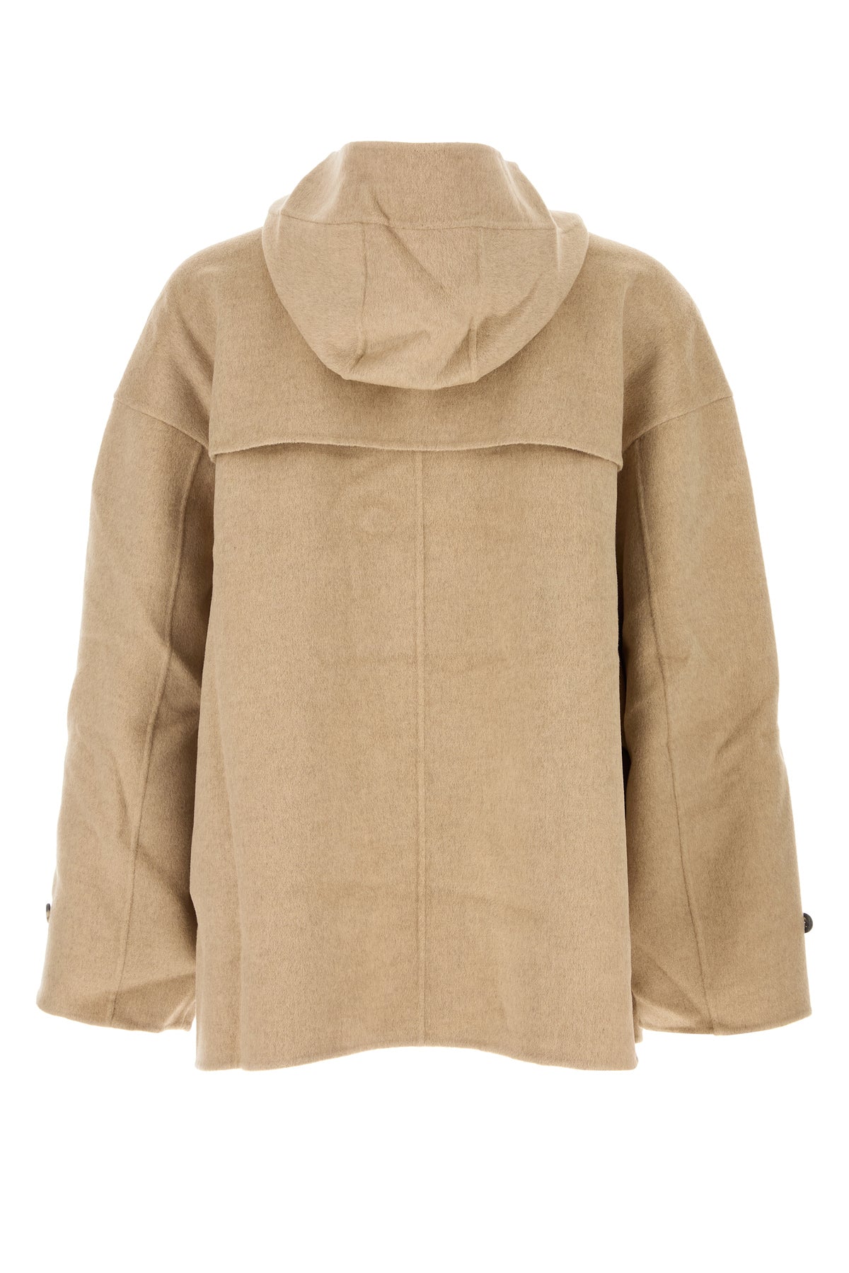 Short-cut oversize coat realized in pure wool enriched by logoed label at the back.