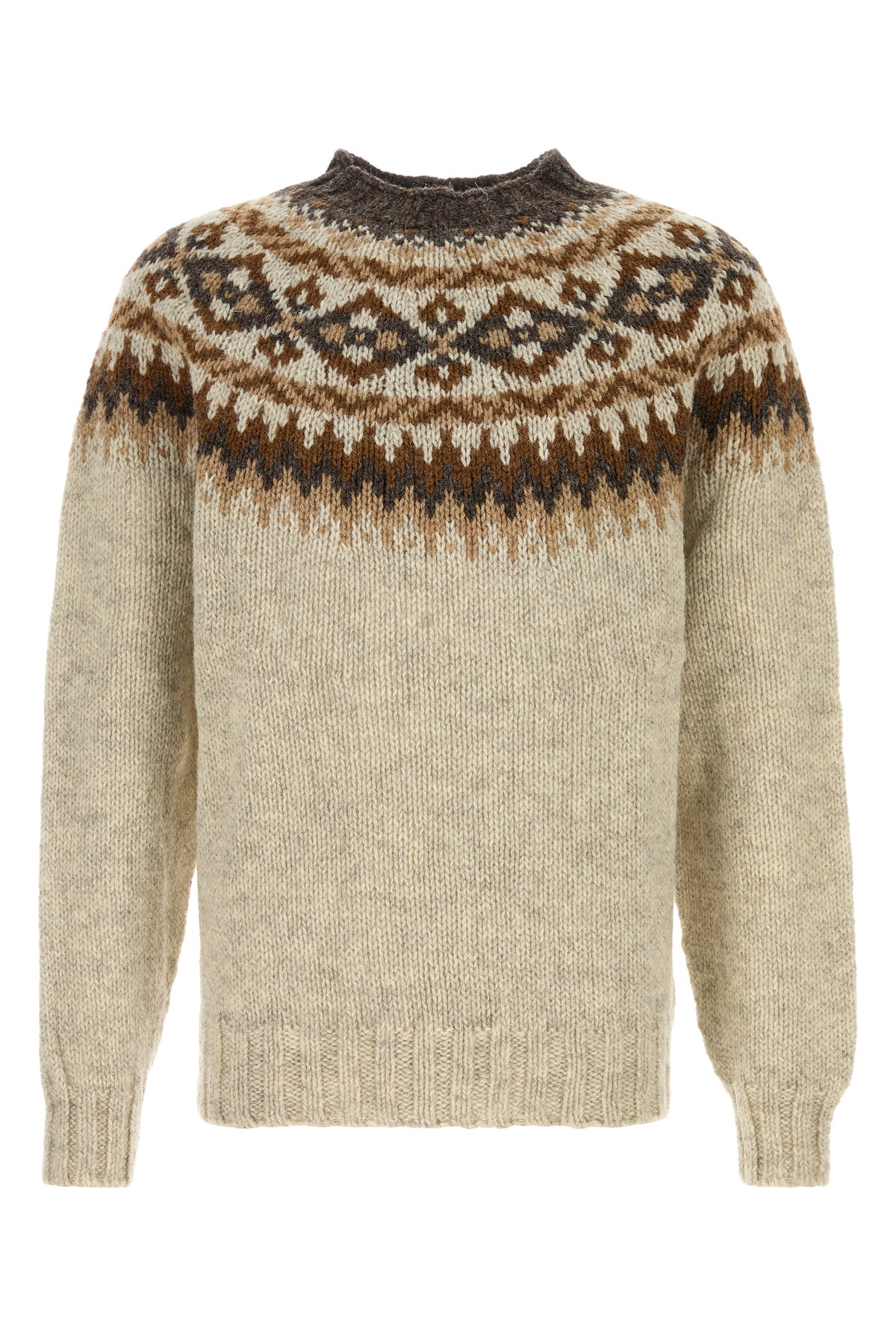 Sweater realized in pure wool characterized by peculiar embroidery at the top.
