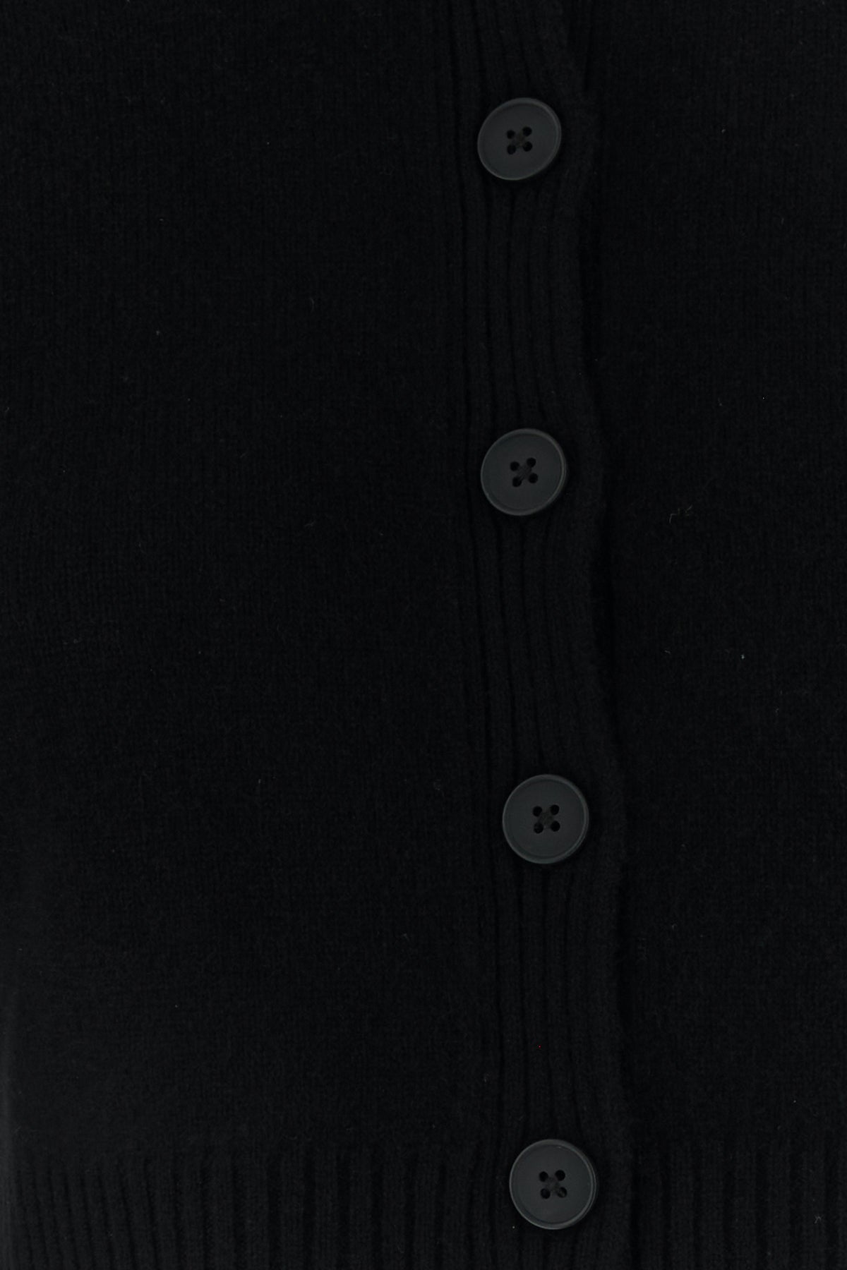 Short-cut cardigan realized in pure cashmere characterized by tonal embroidered logo on the hemline.
